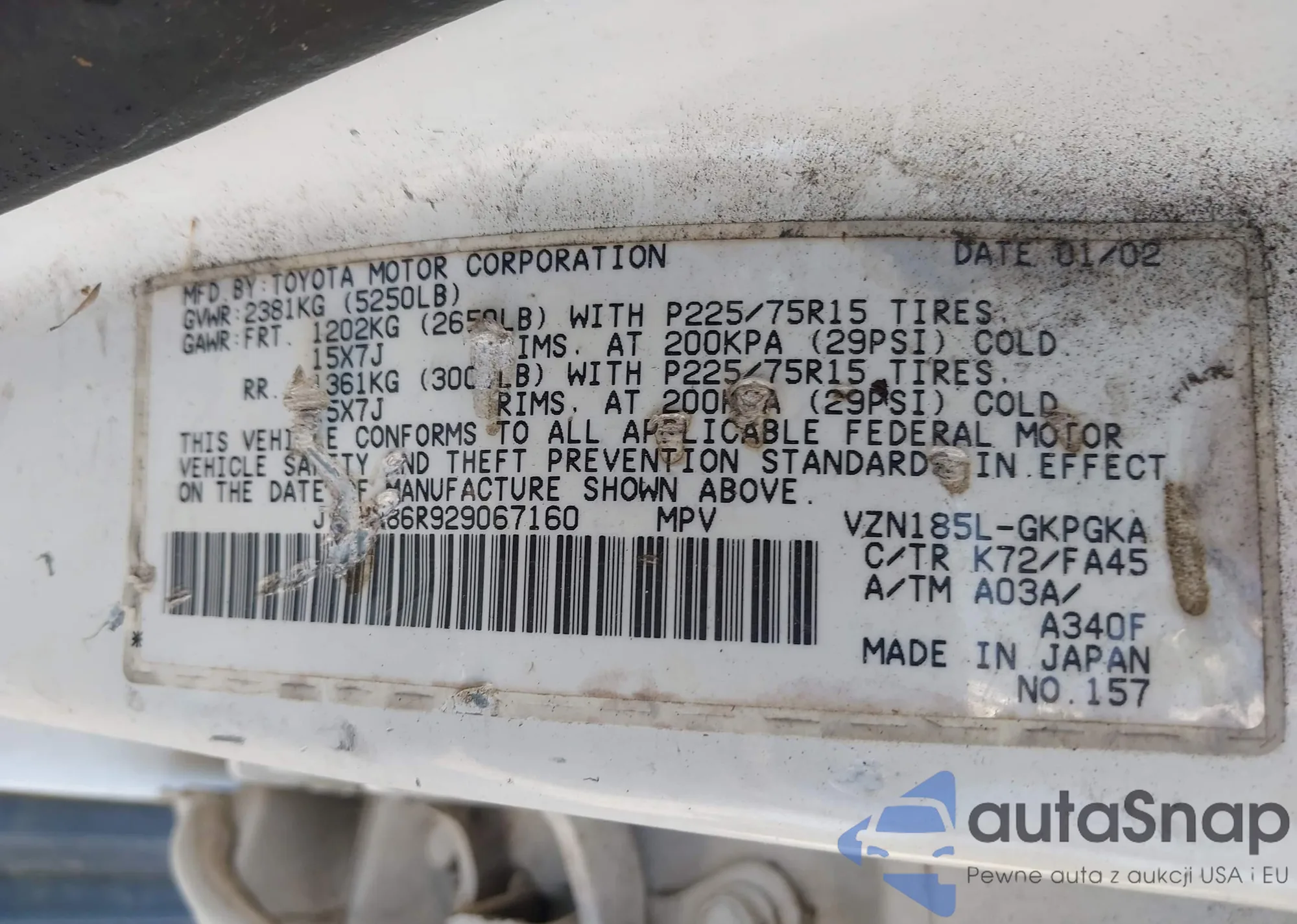 LOT: 42637929 VIN: JT3HN86R929067160