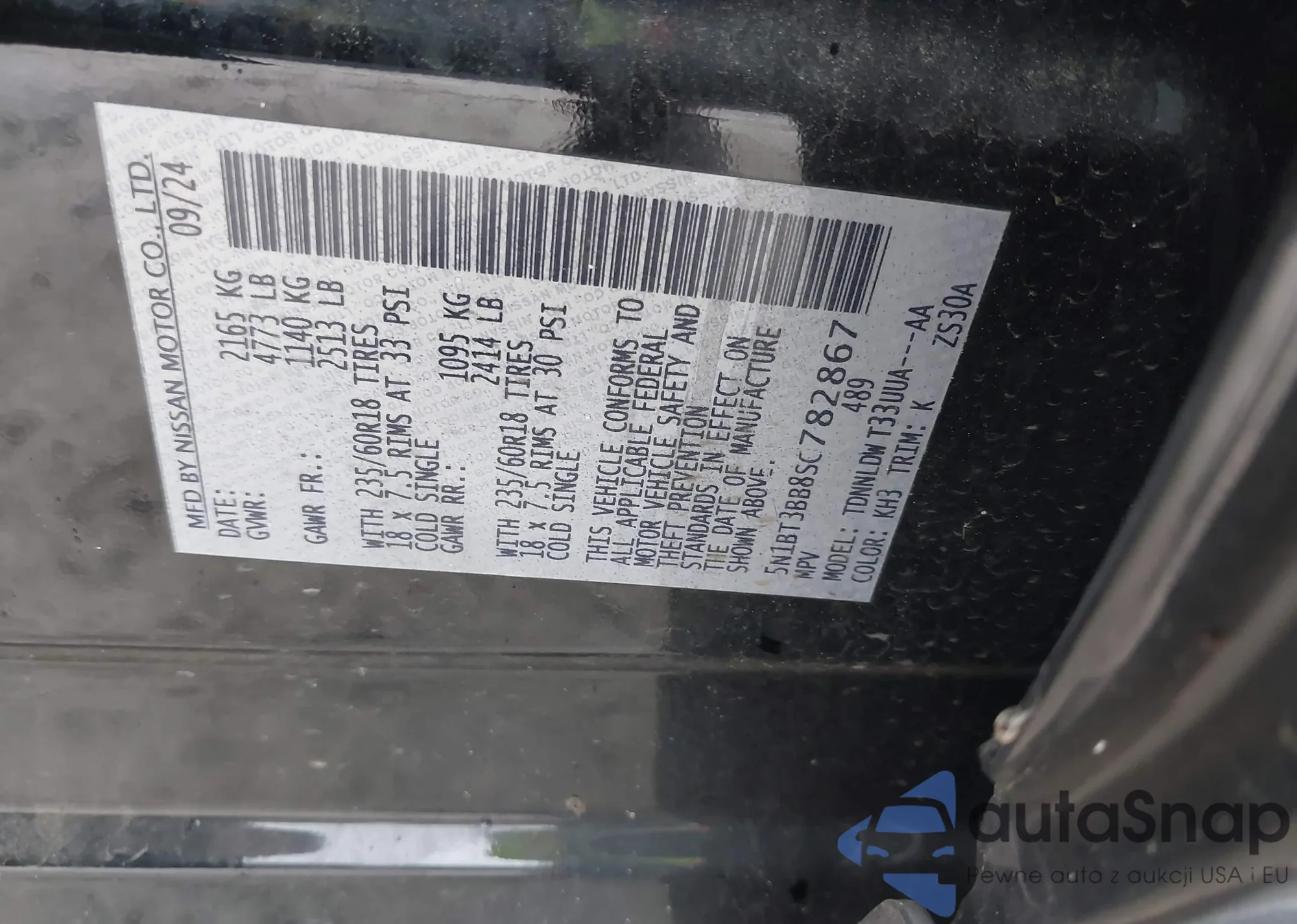 • VIN 5N1BT3BB8SC782867