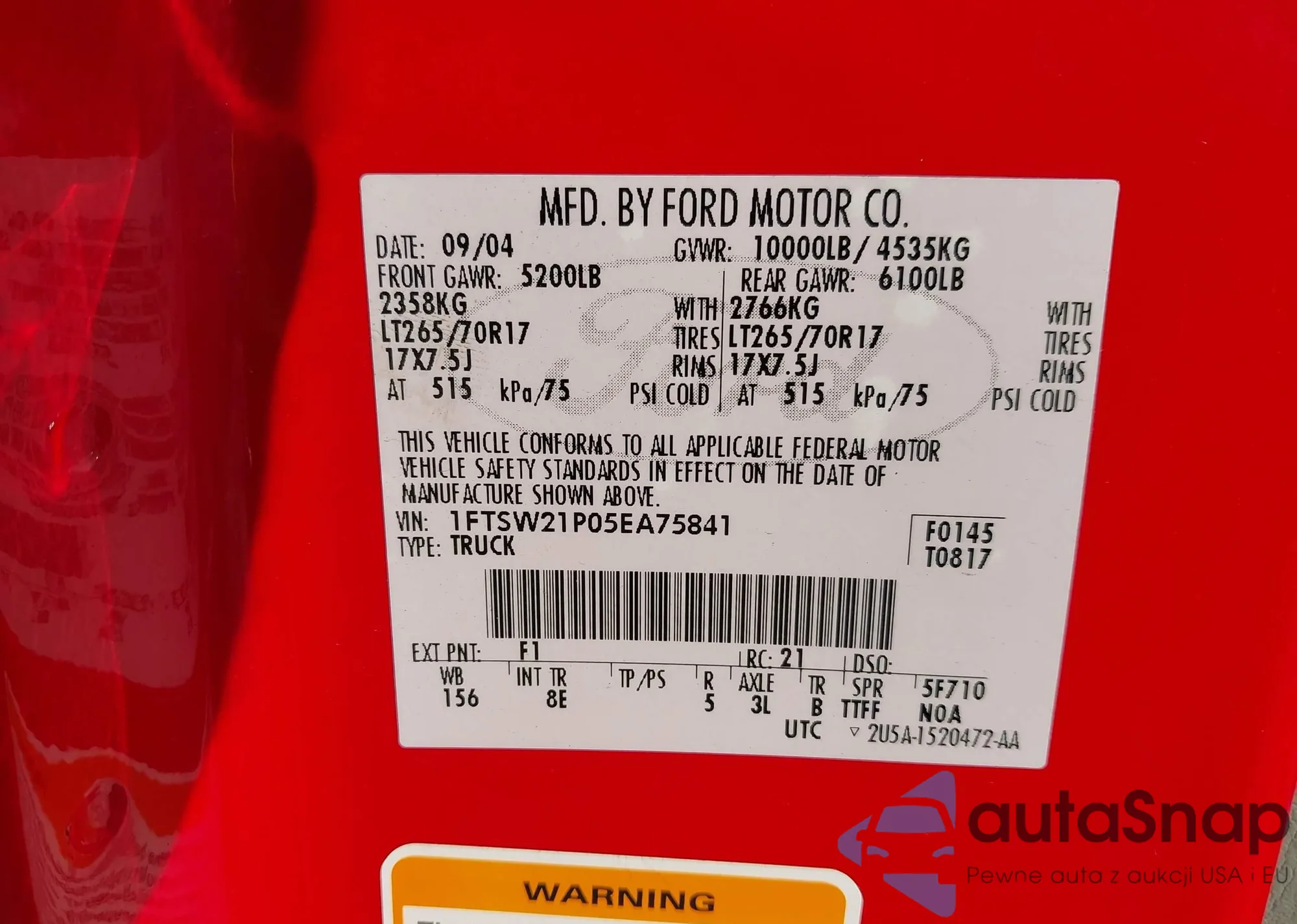 • VIN 1FTSW21P05EA75841