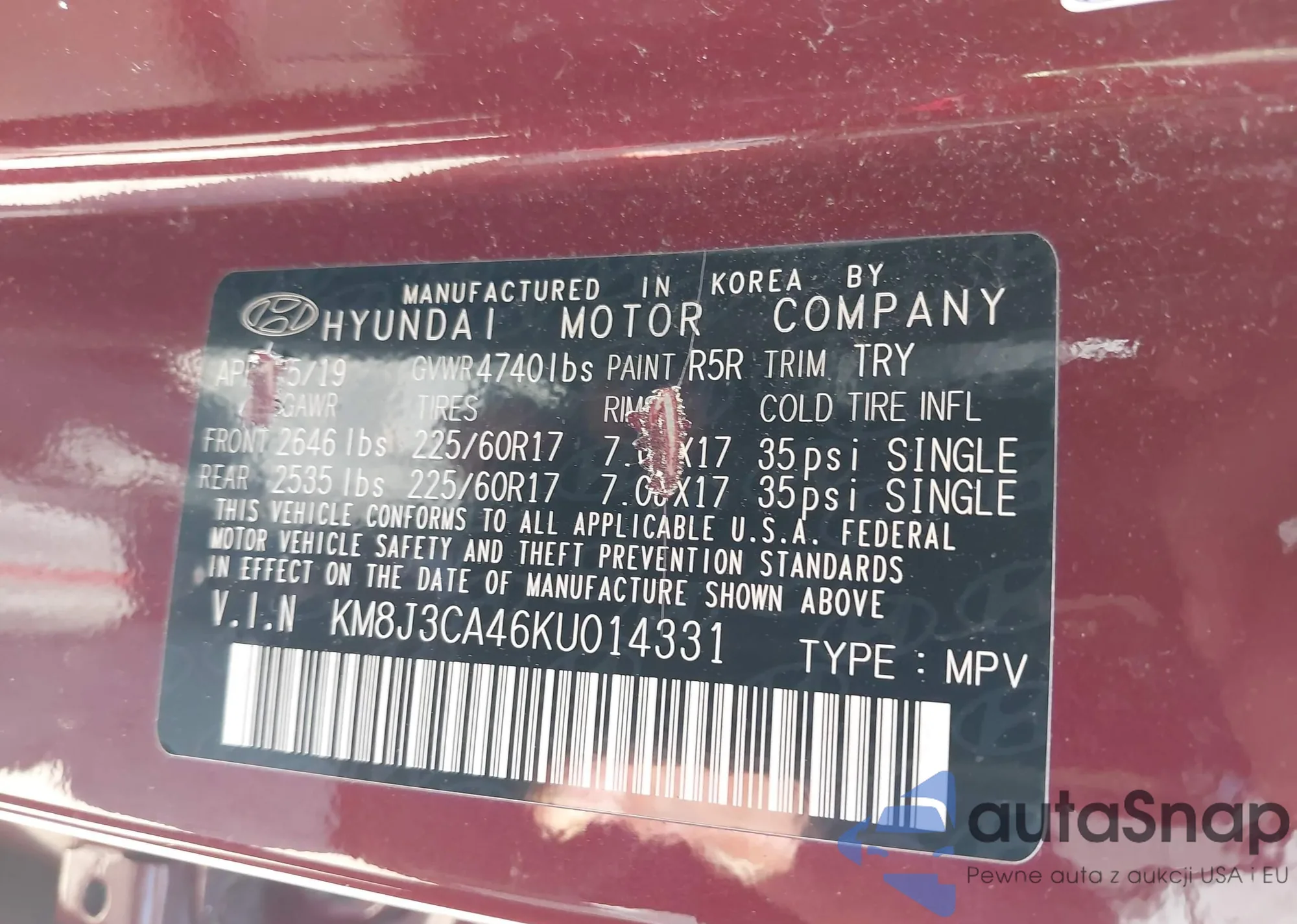 • VIN KM8J3CA46KU014331