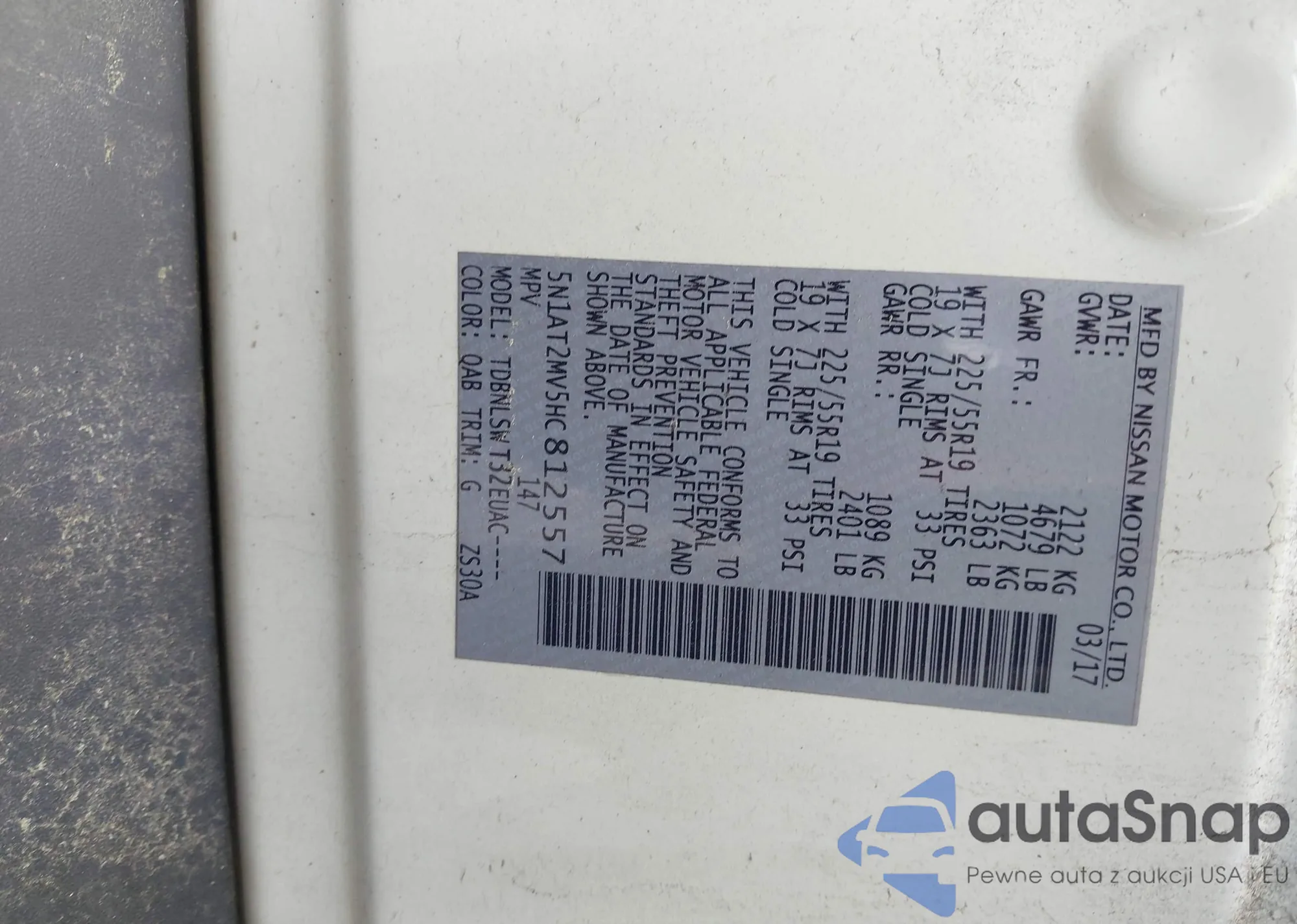 • VIN 5N1AT2MV5HC812557