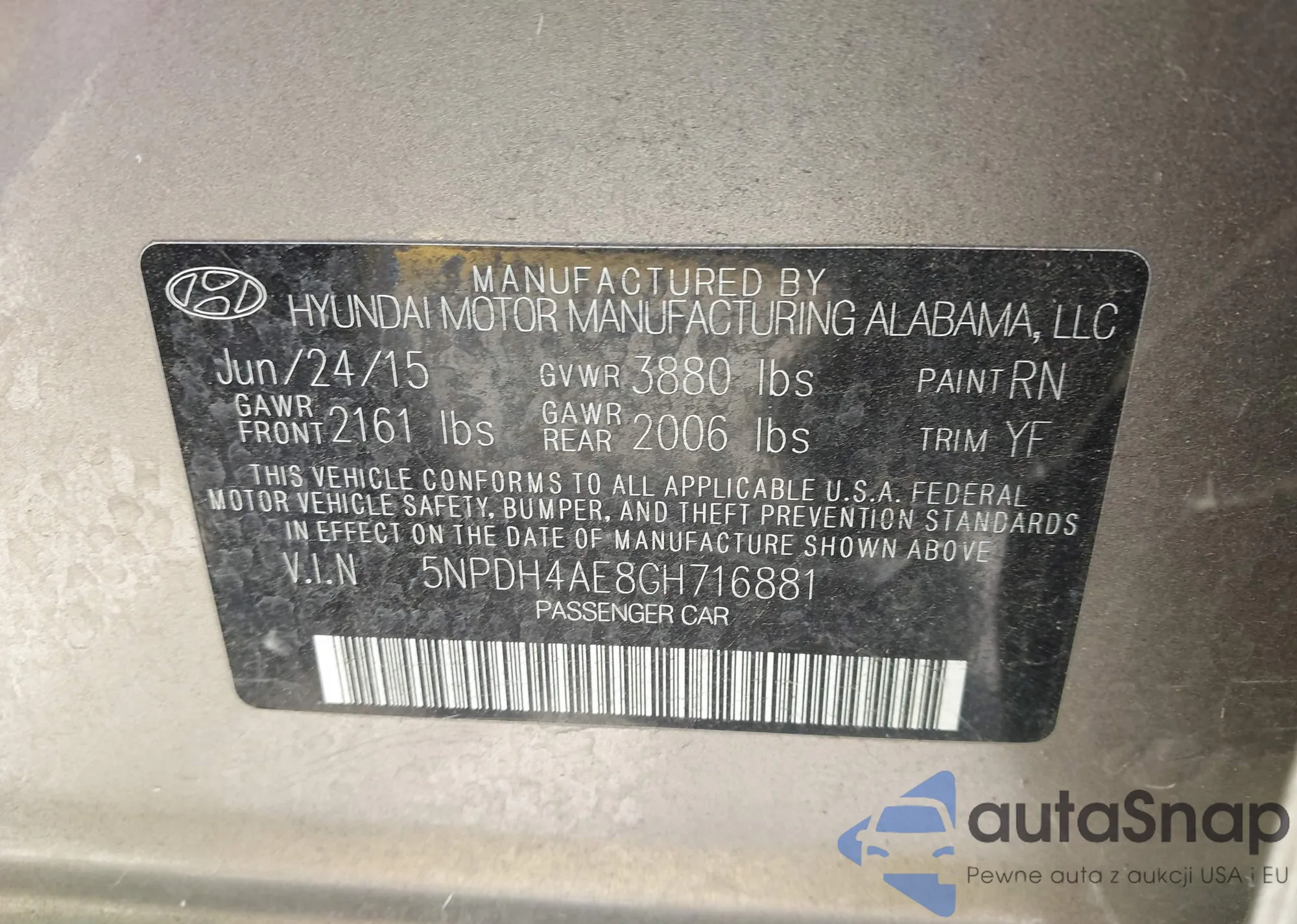 LOT: 42684924 VIN: 5NPDH4AE8GH716881