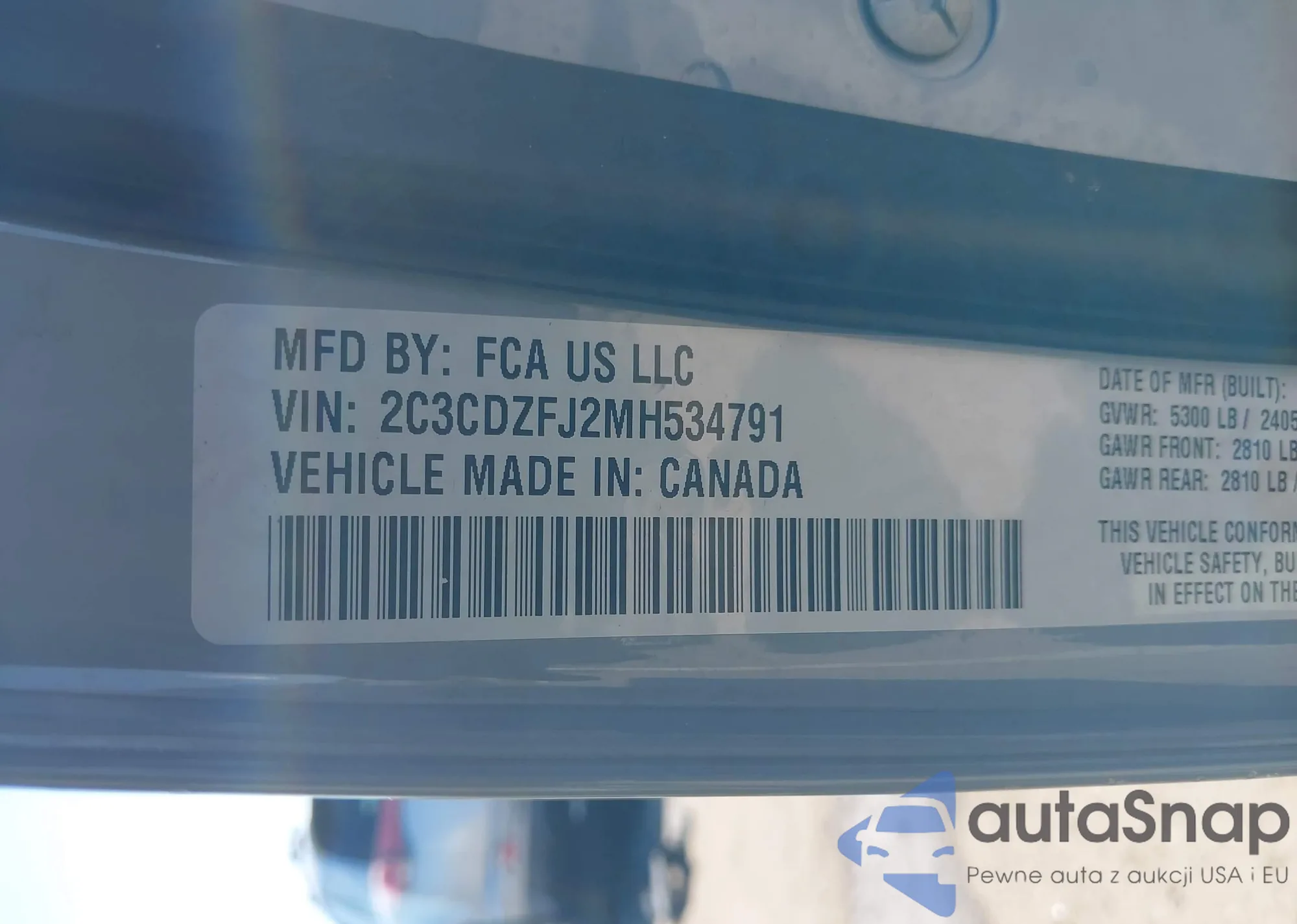 • VIN 2C3CDZFJ2MH534791