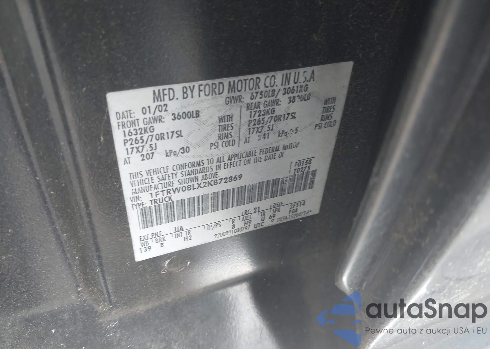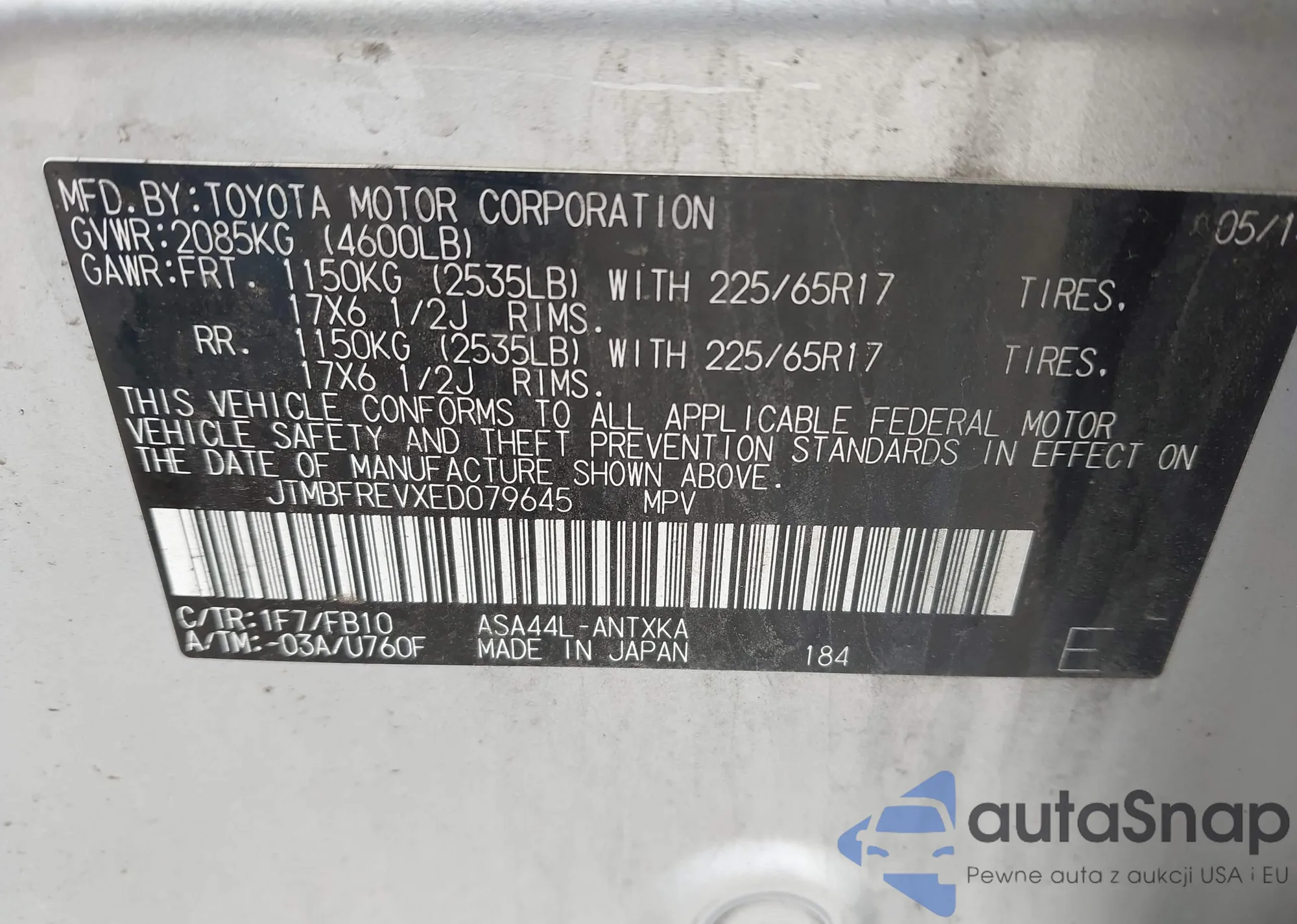 LOT: 42679372 VIN: JTEBT17R138000326