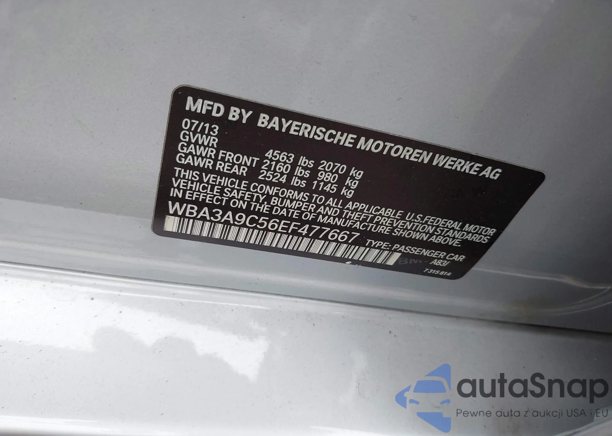 • VIN WBA3A9C56EF477667