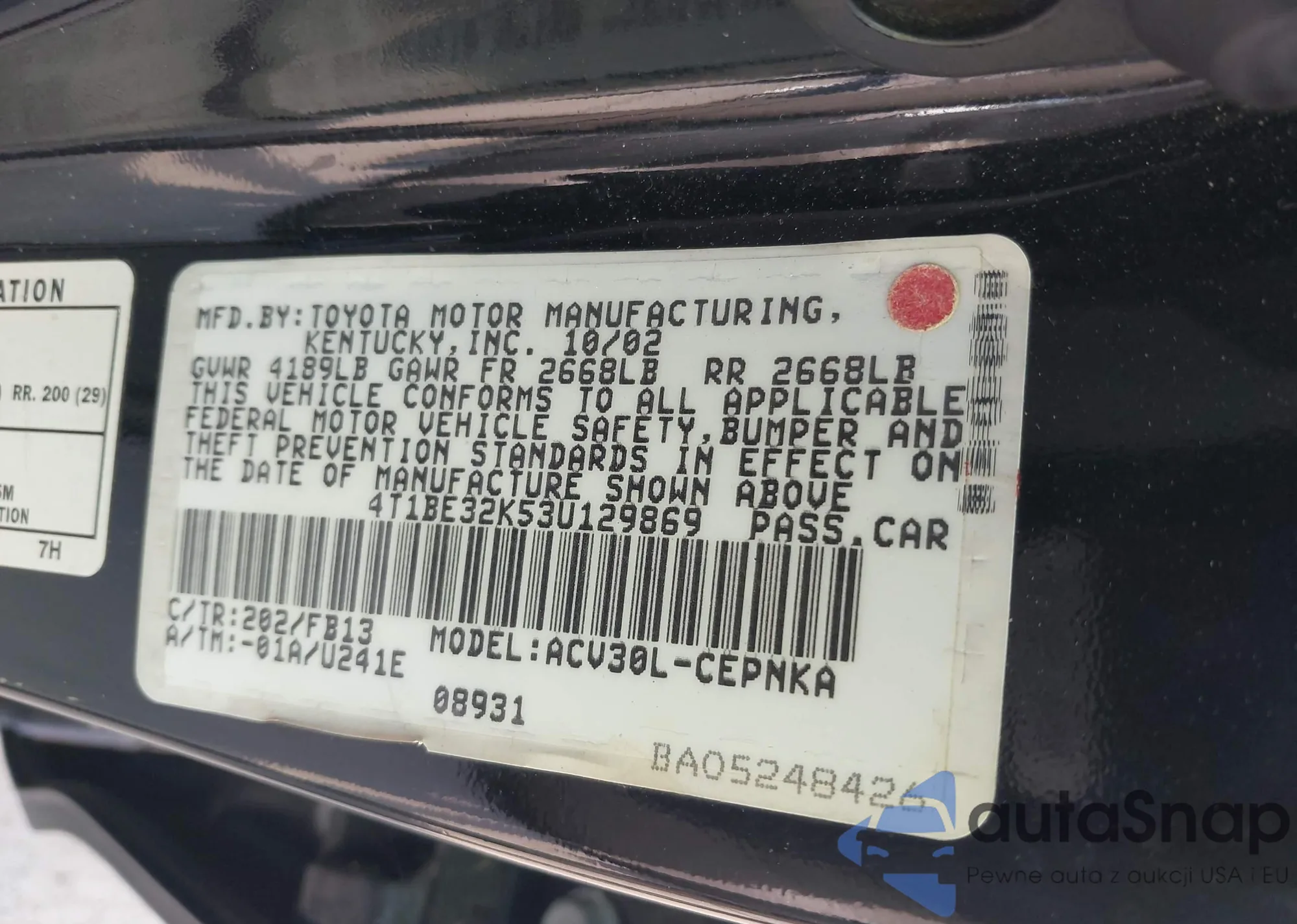 LOT: 42679817 VIN: 4T1BE32K53U129869