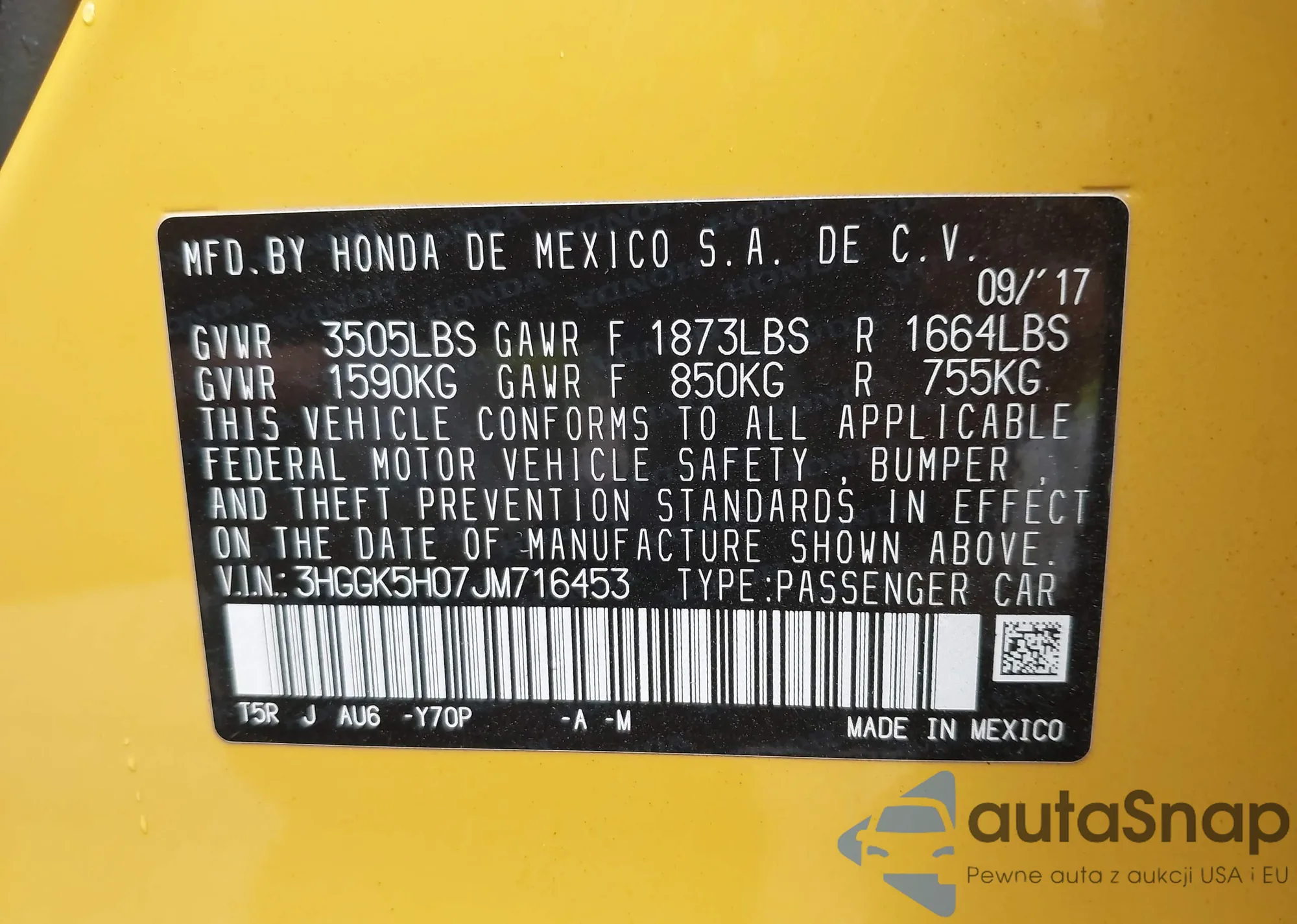 LOT: 42673156 VIN: 1HGCP26309A092757
