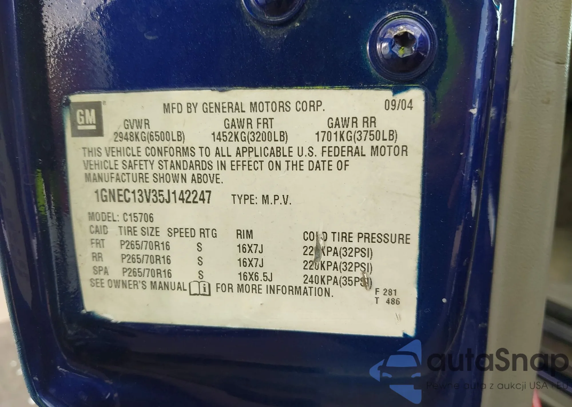 LOT: 42762871 VIN: 1GNEC13V43J154016