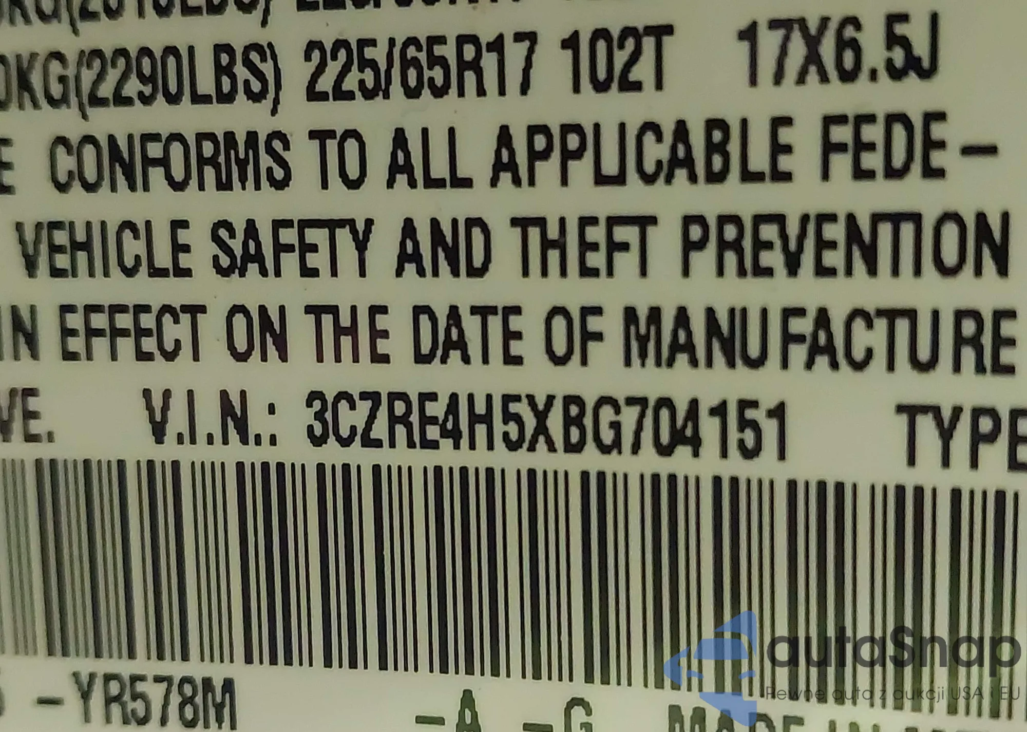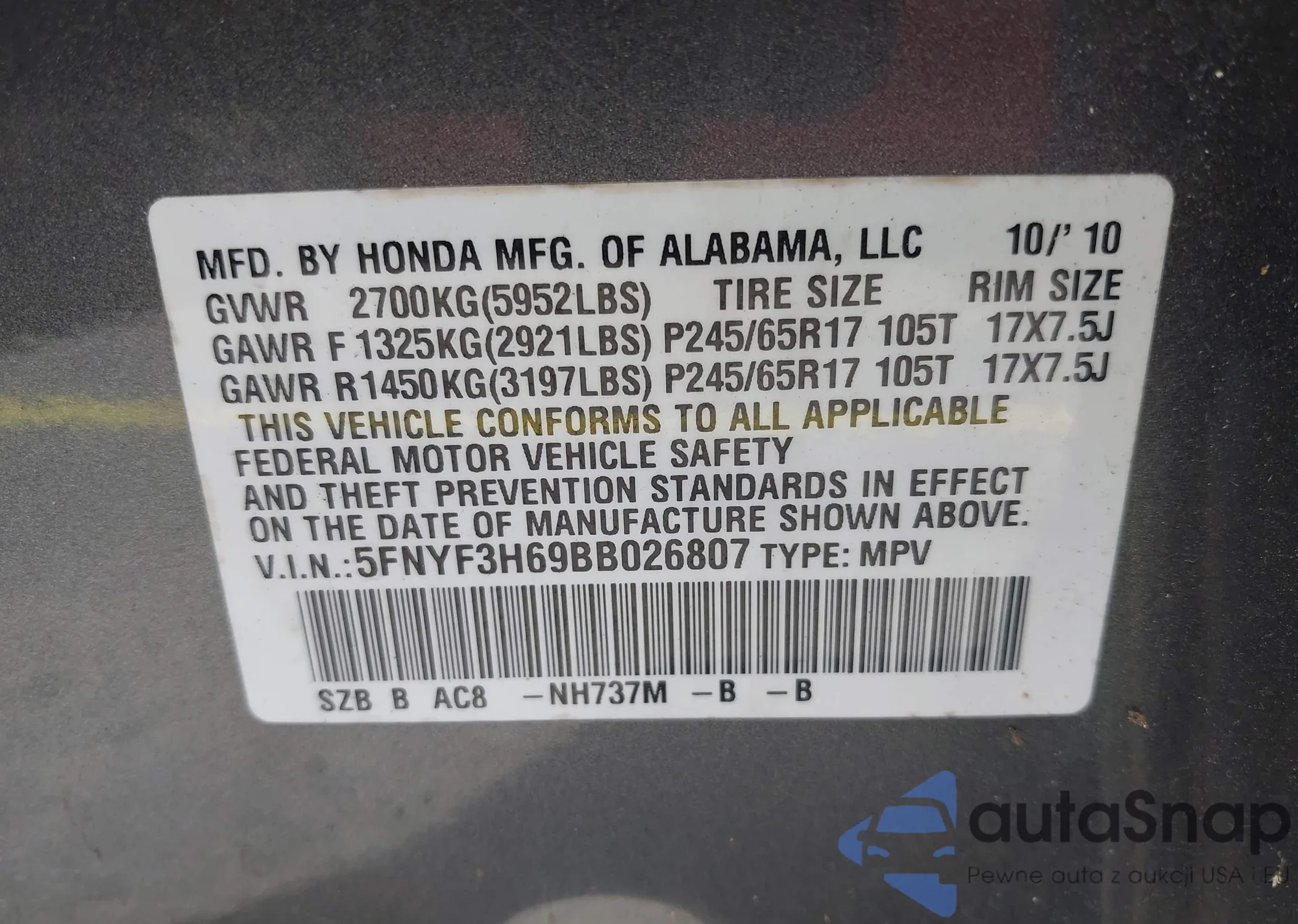 LOT: 42714409 VIN: 5J6YH28738L011586