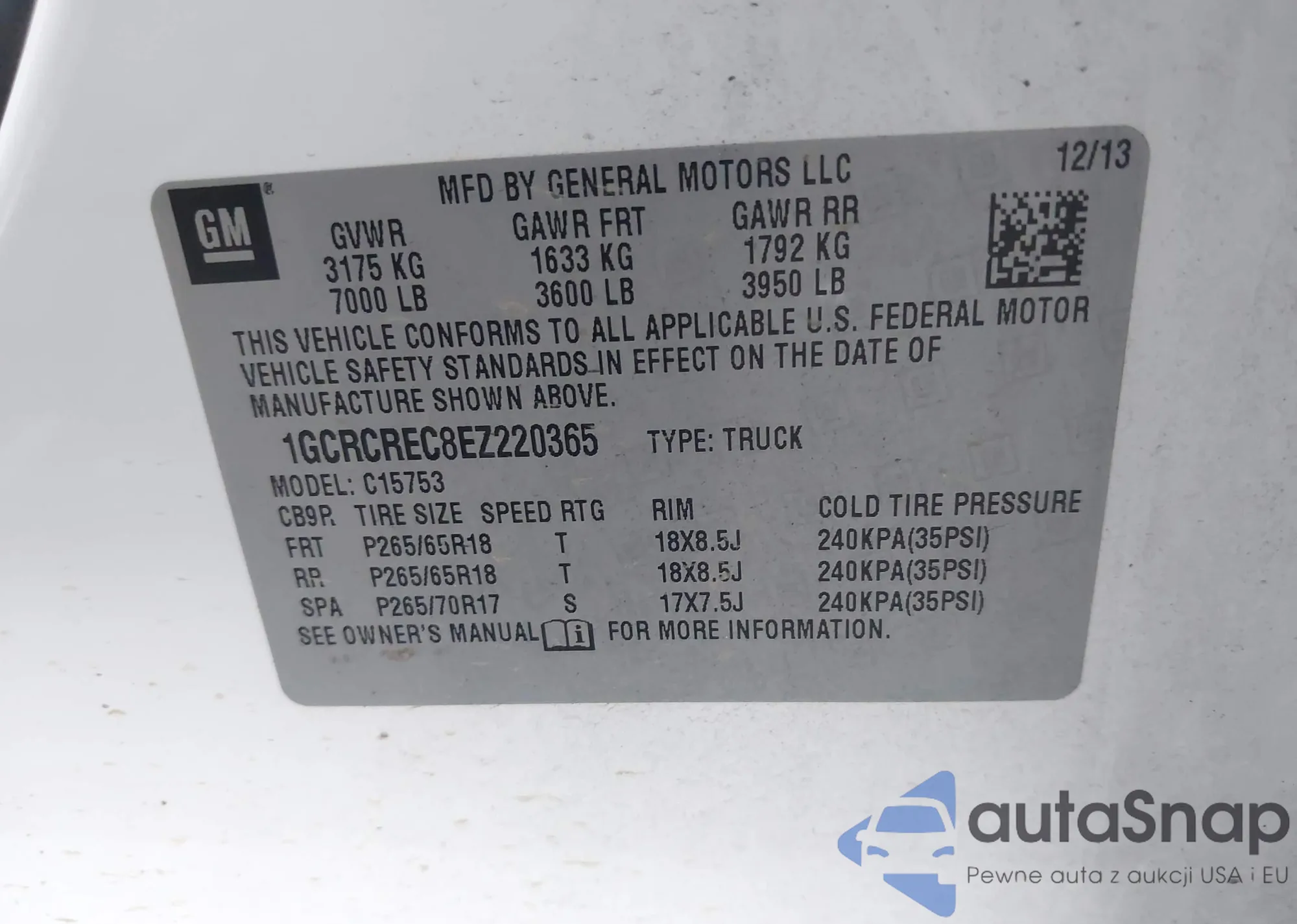 • VIN 1GCRCREC8EZ220365