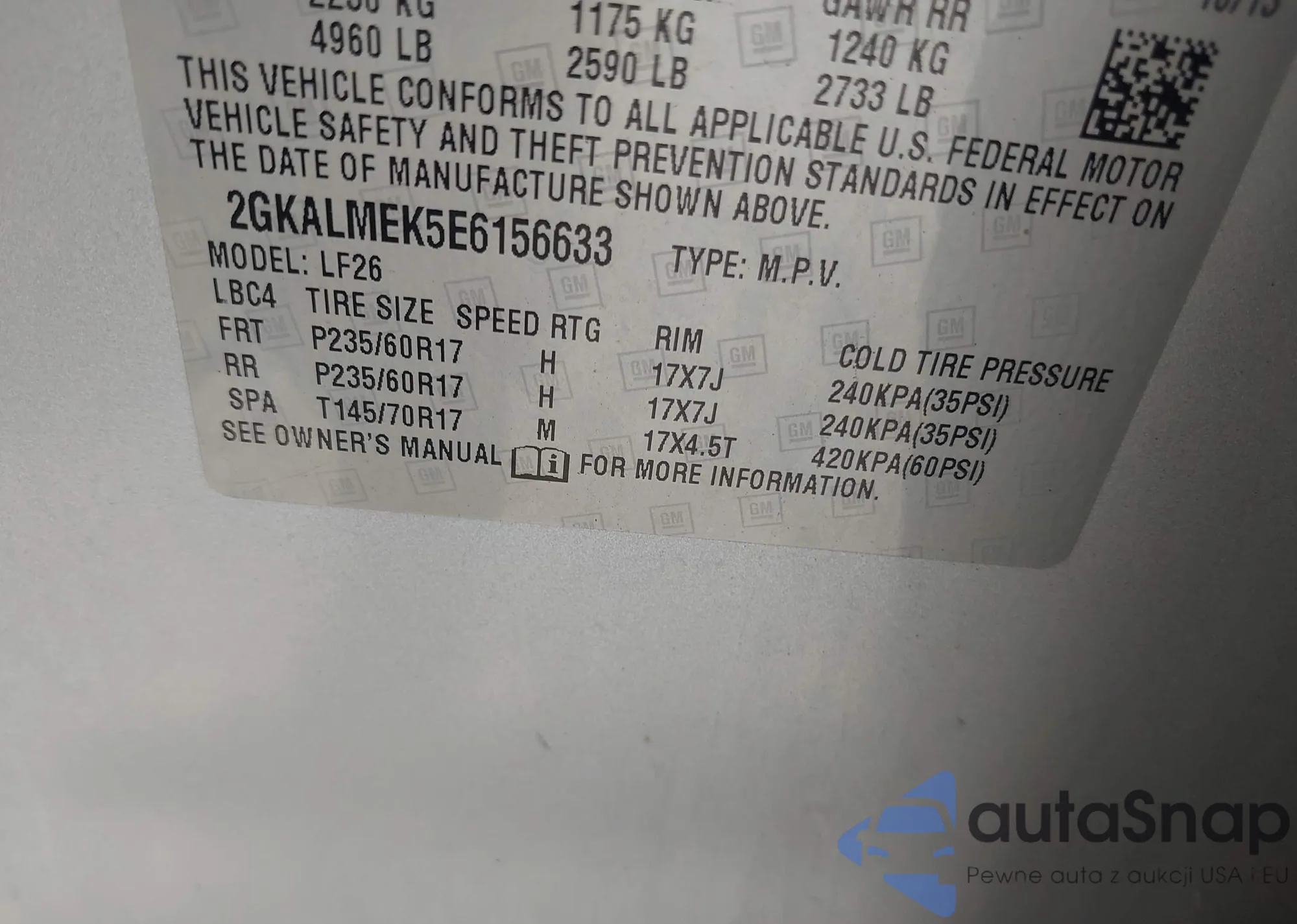 • VIN 2GKALMEK5E6156633