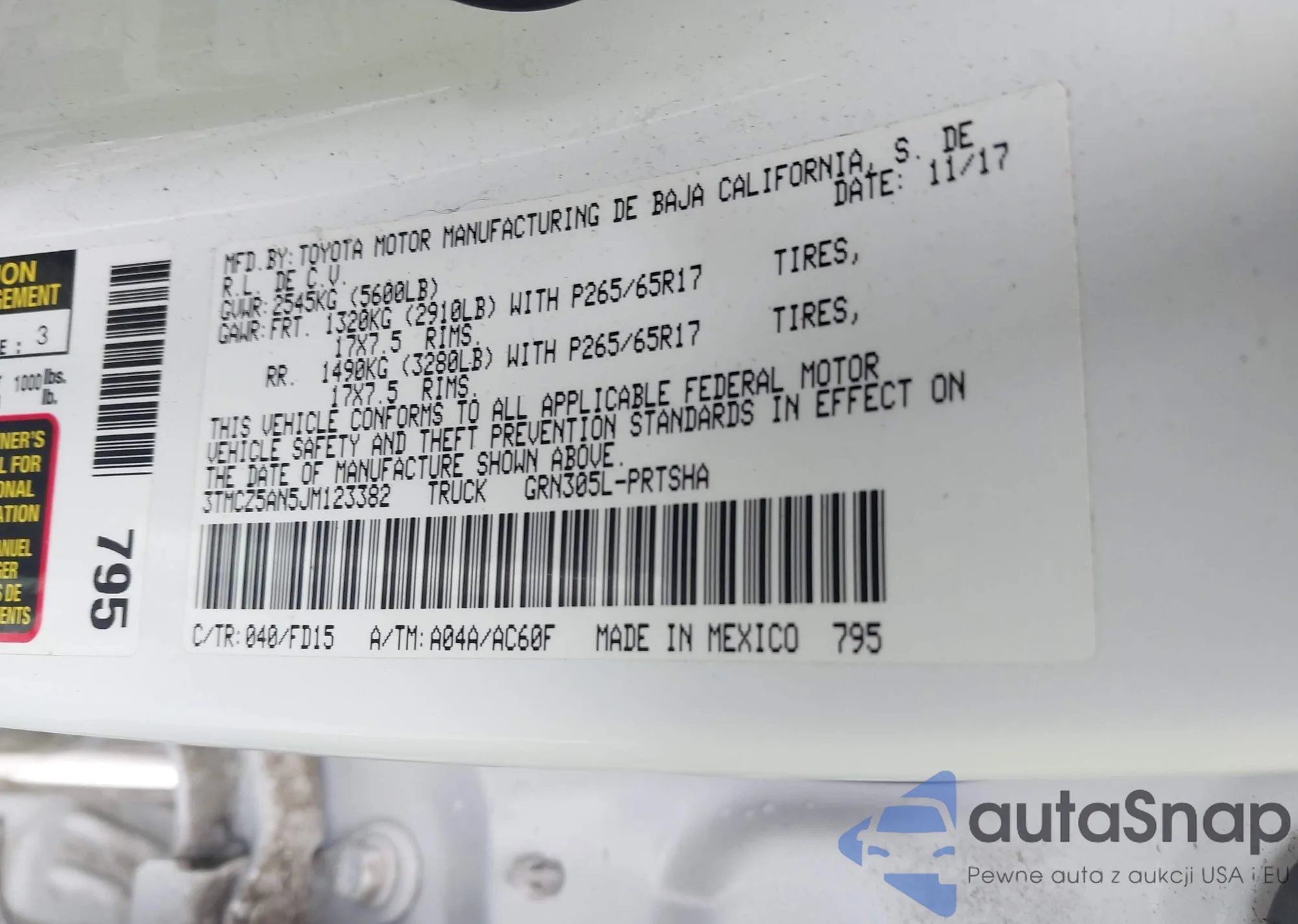• VIN 3TMCZ5AN5JM123382
