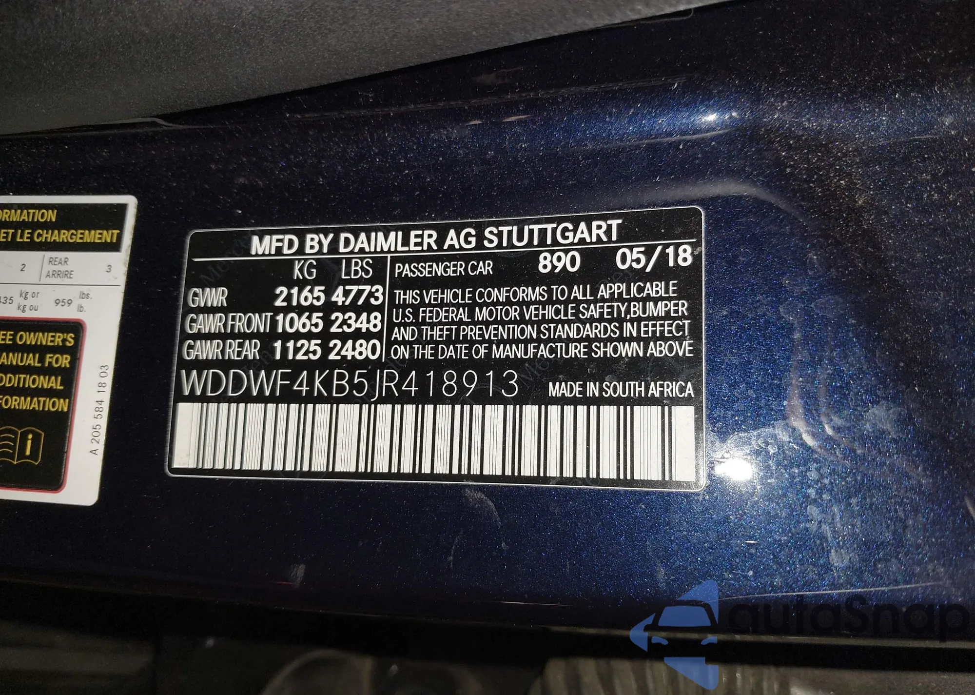 • VIN WDDWF4KB5JR418913