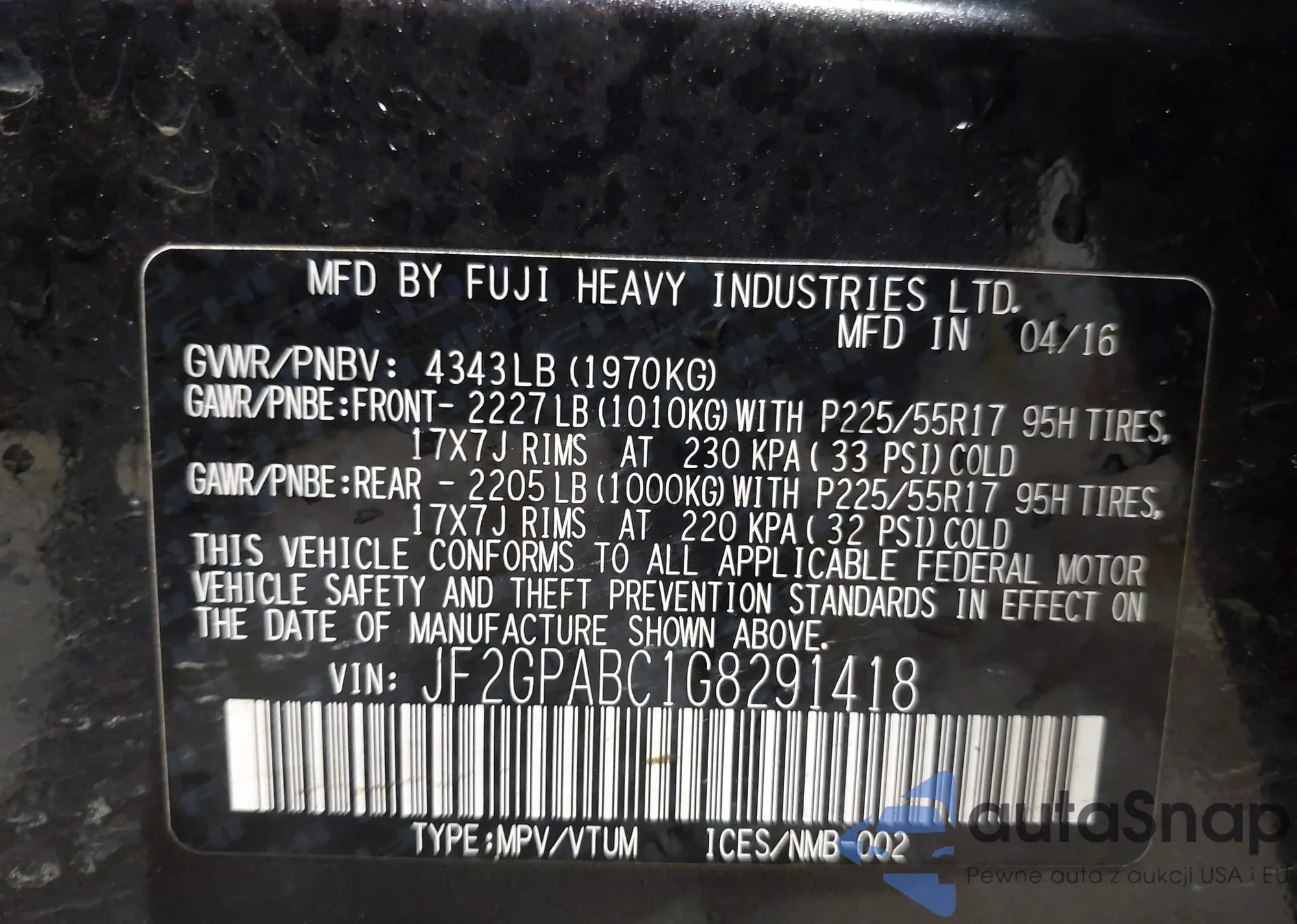 LOT: 42707803 VIN: WAUTPBFF5HA040769
