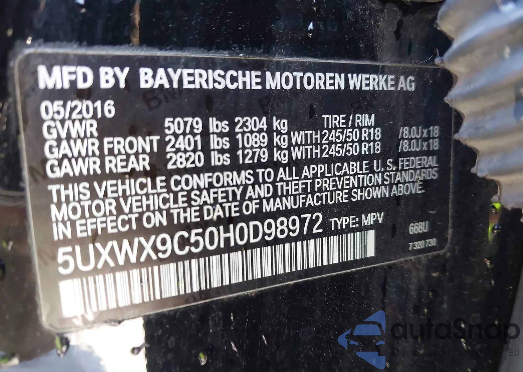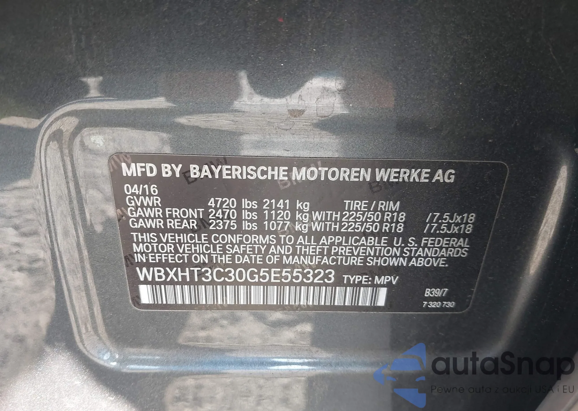 LOT: 42165005 VIN: WBAPH7G58ANM49994