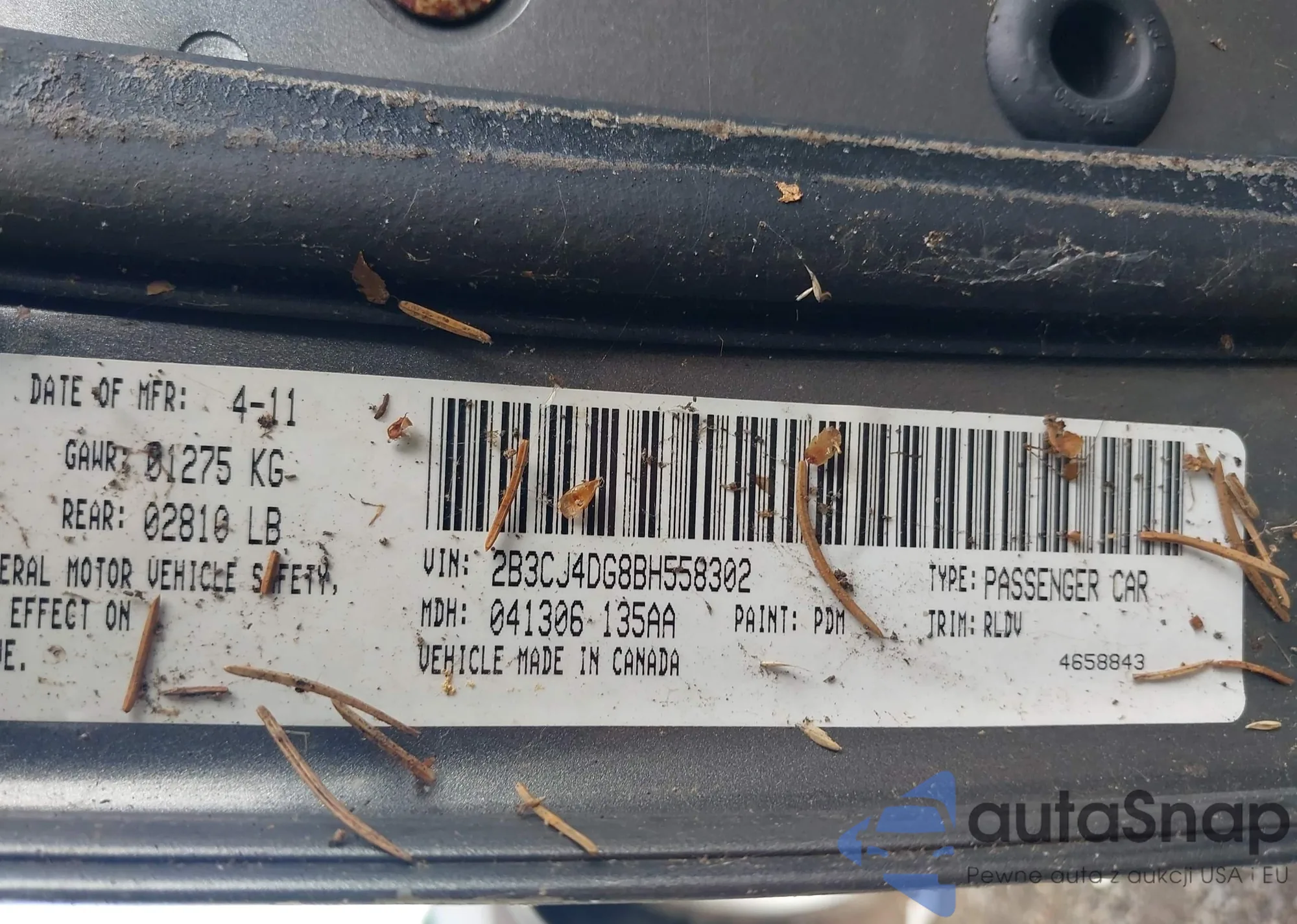 • VIN 2B3CJ4DG8BH558302
