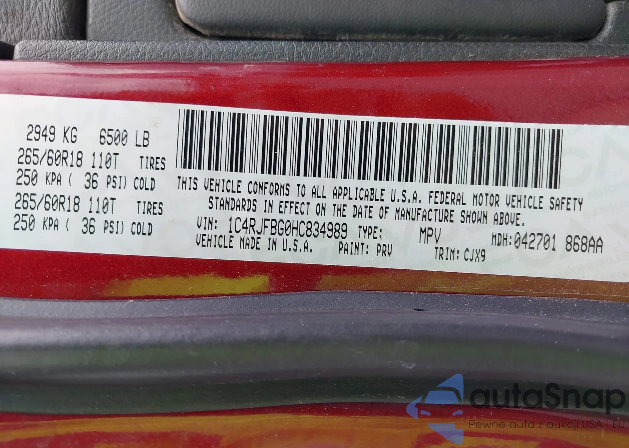 • VIN 1C4RJFBG0HC834989