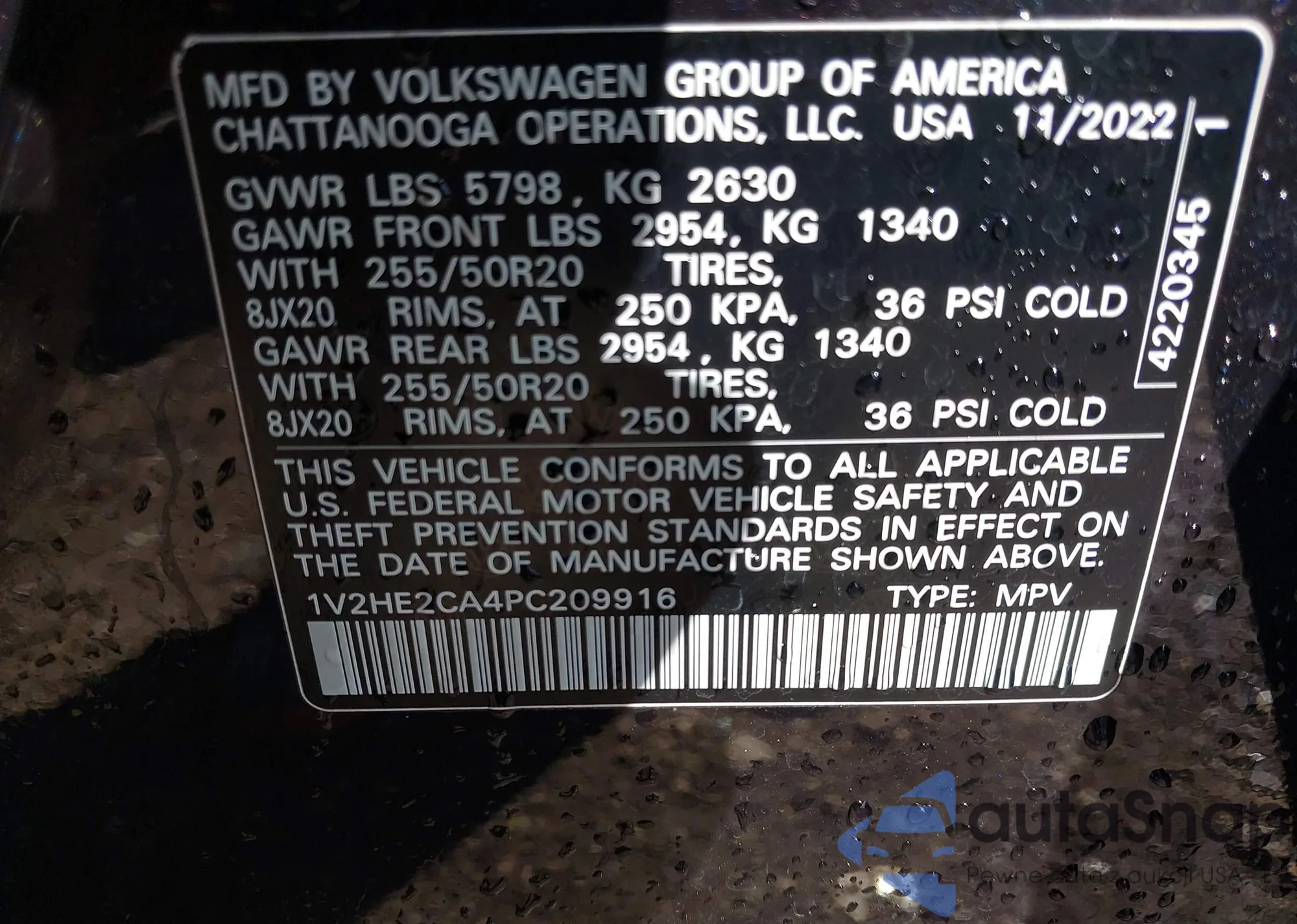 • VIN 1V2HE2CA4PC209916