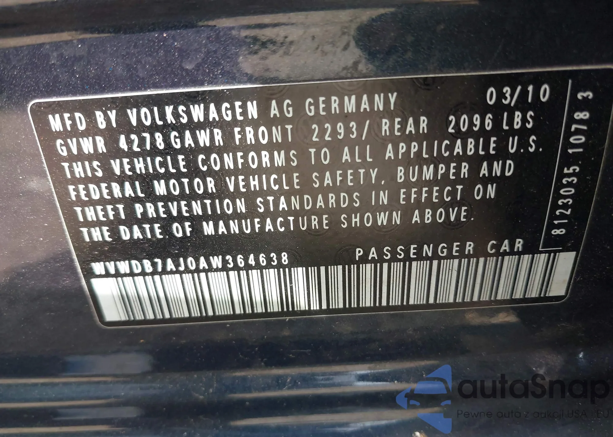 • VIN 2T1KU4EE0AC339776