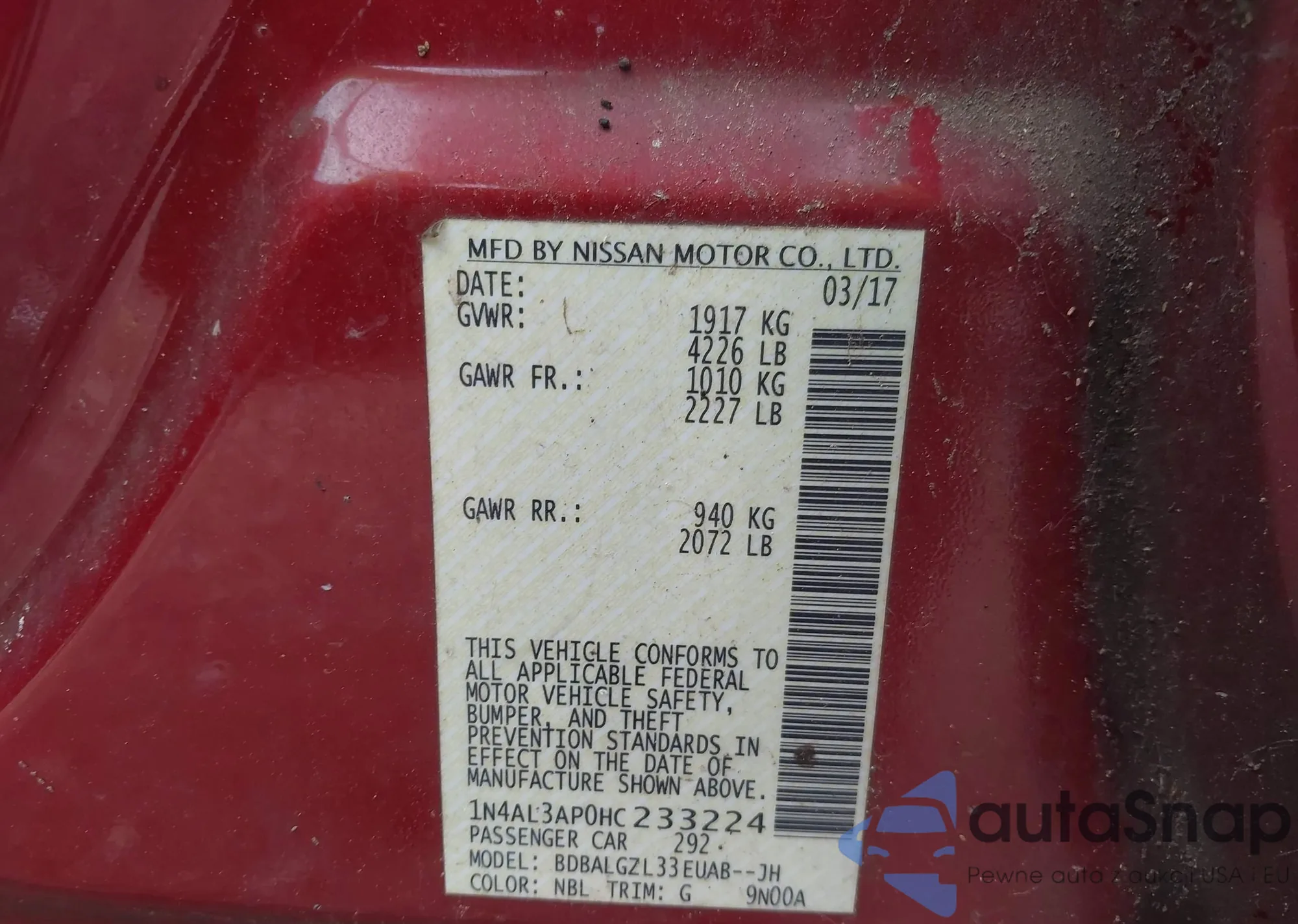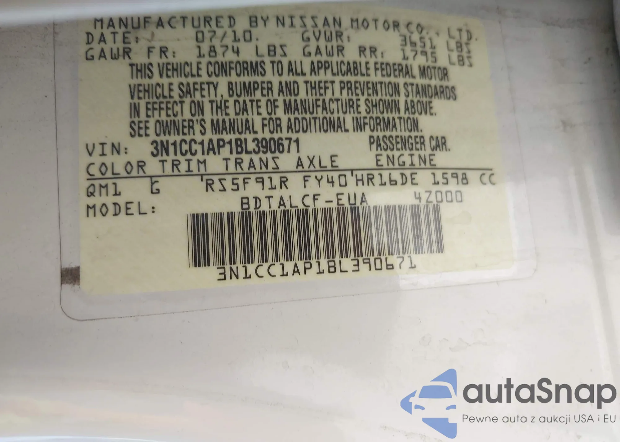 • VIN 3N1CC1AP1BL390671