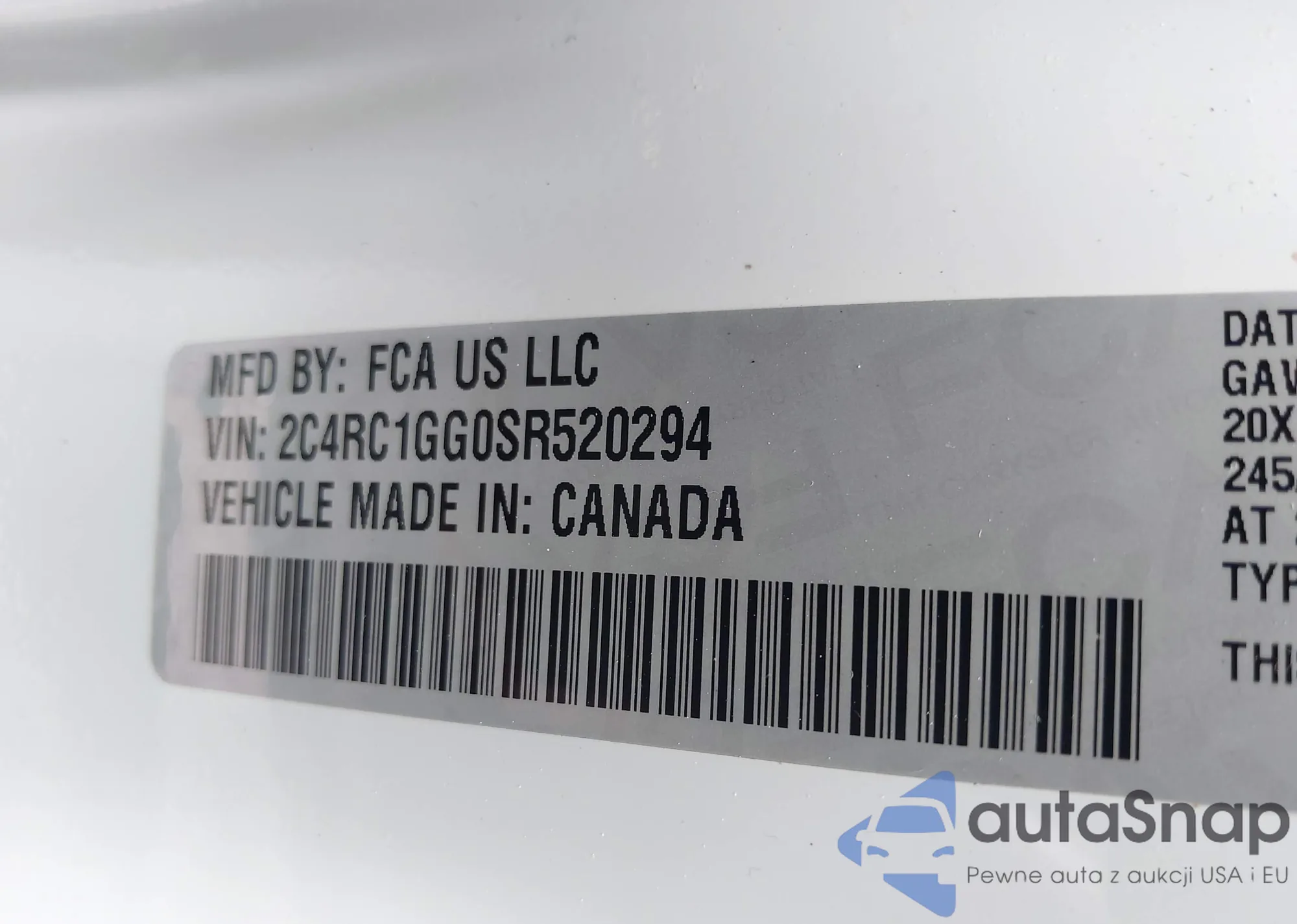 • VIN 2C4RC1GG0SR520294