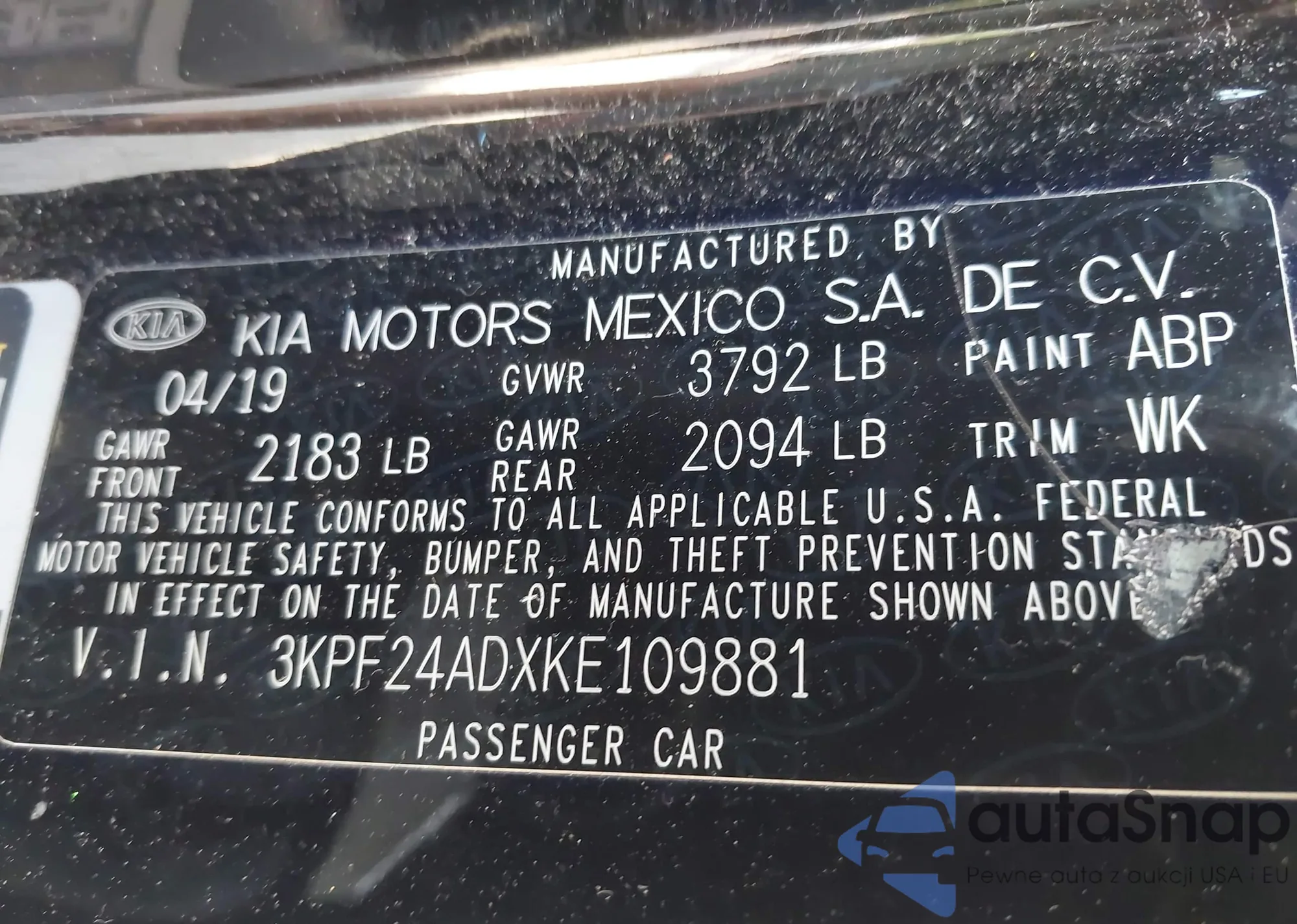 LOT: 42188863 VIN: 4S4WMARD3K3445534