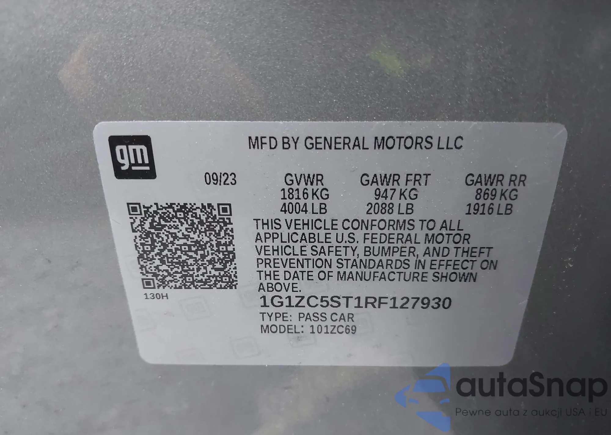 LOT: 42404461 VIN: 1G1ZC5ST1RF127930