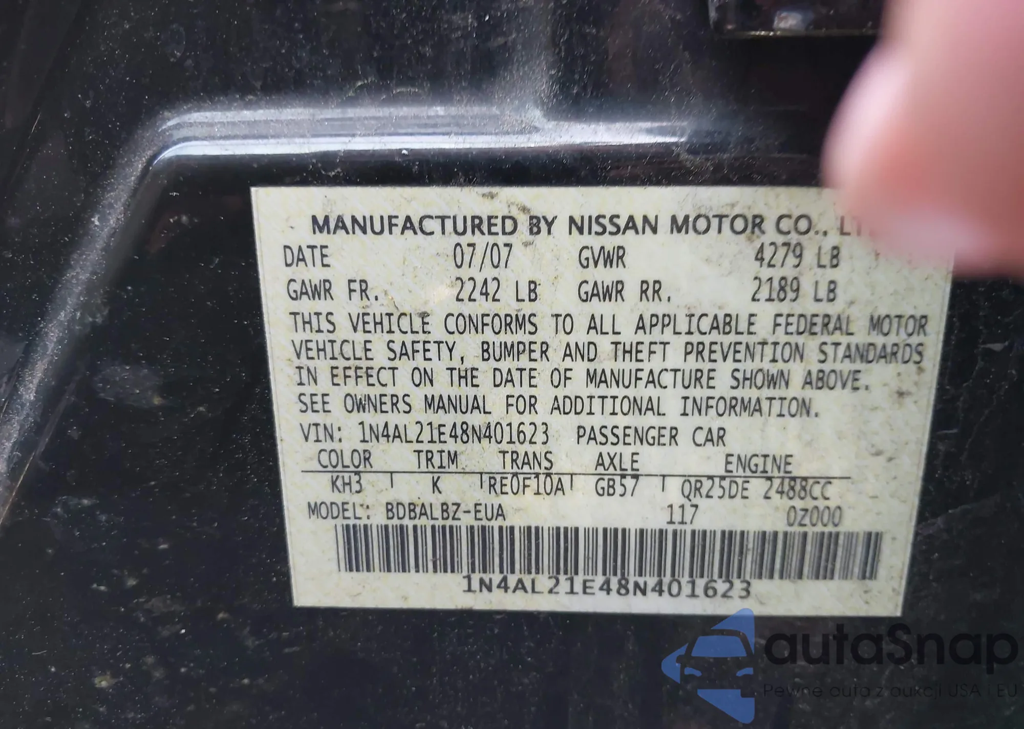 LOT: 42553262 VIN: 1N4AL21E48N401623