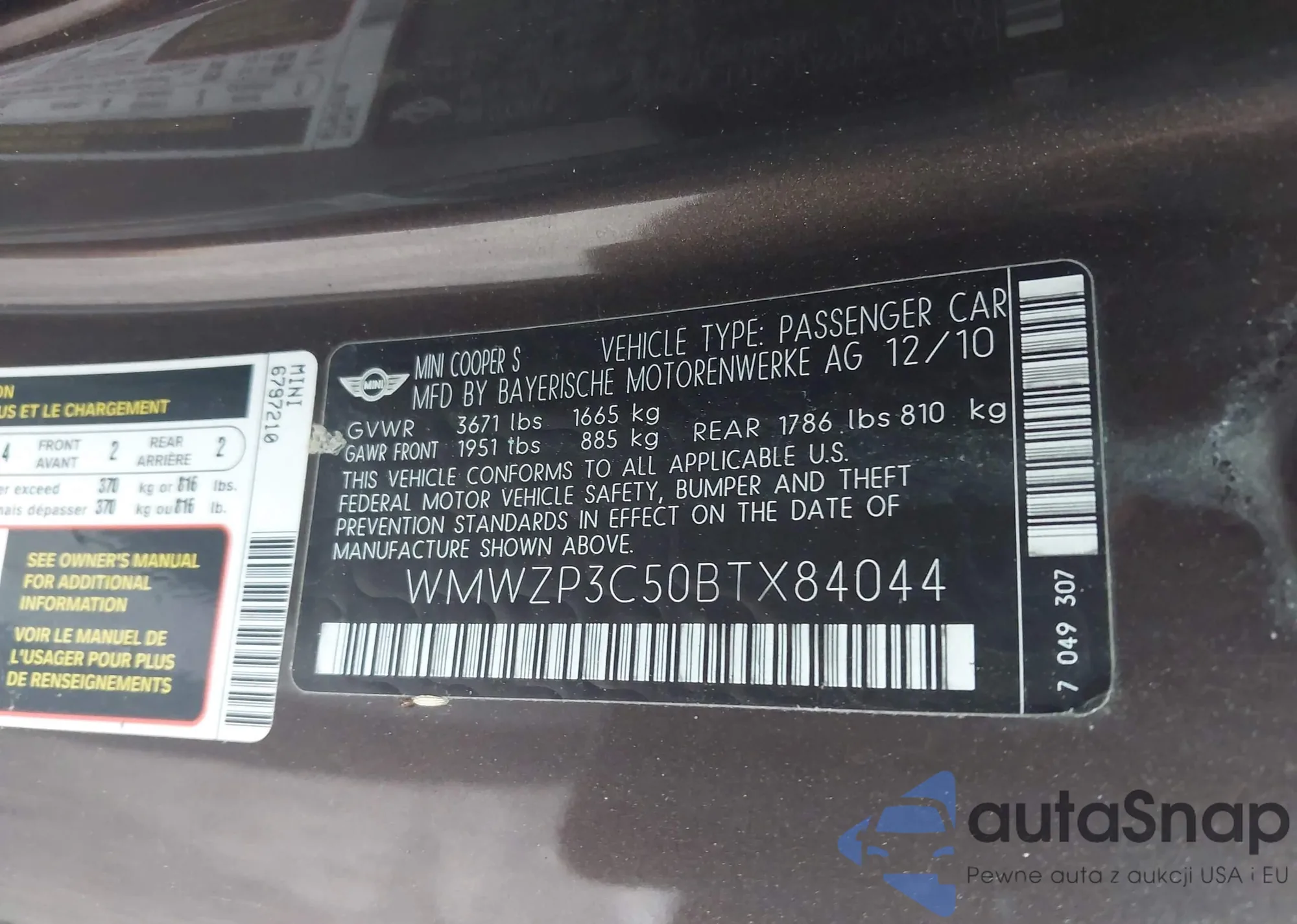 • VIN WBANV93558C130138