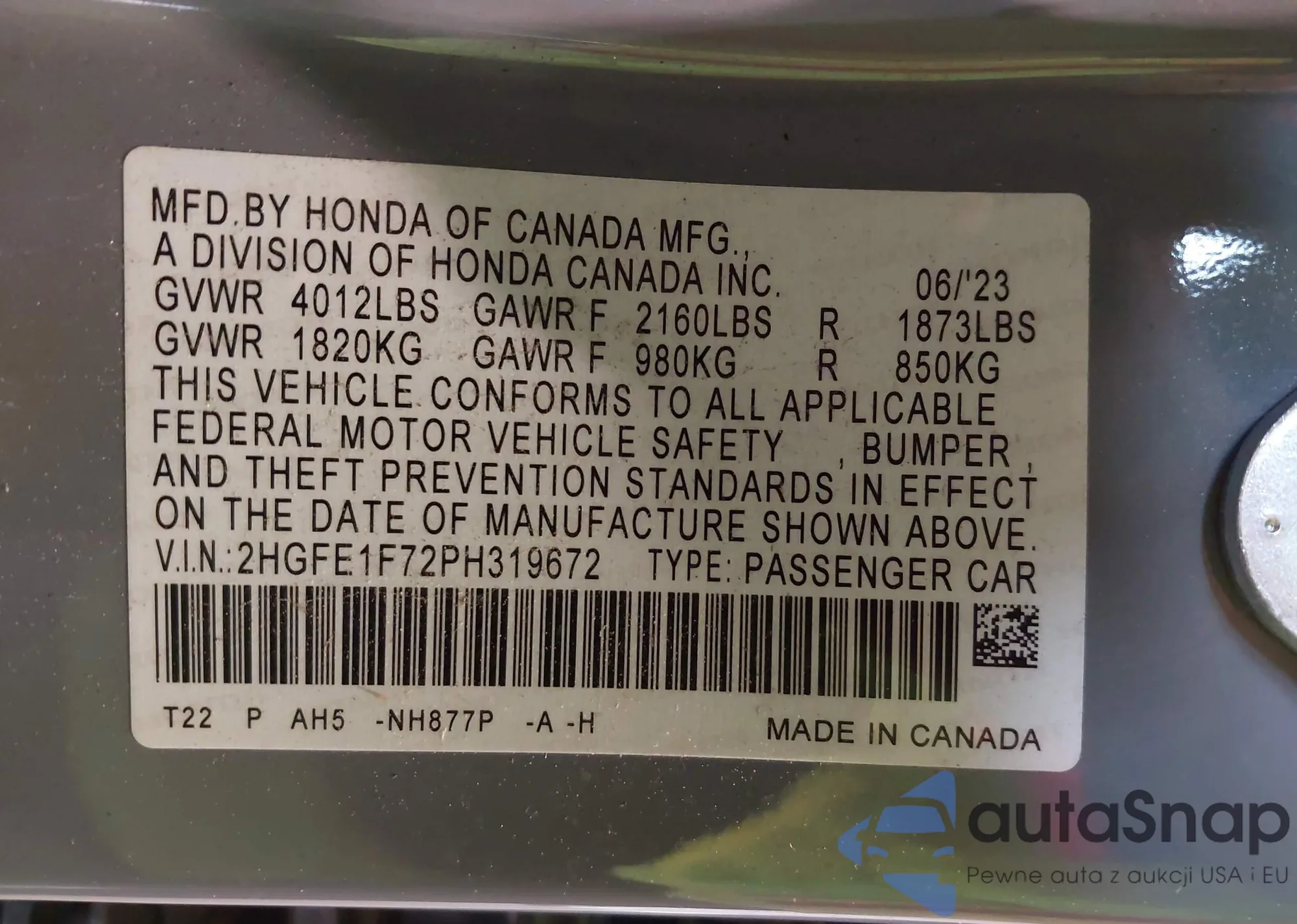 LOT: 42606898 VIN: 2HGFG3B84FH532772