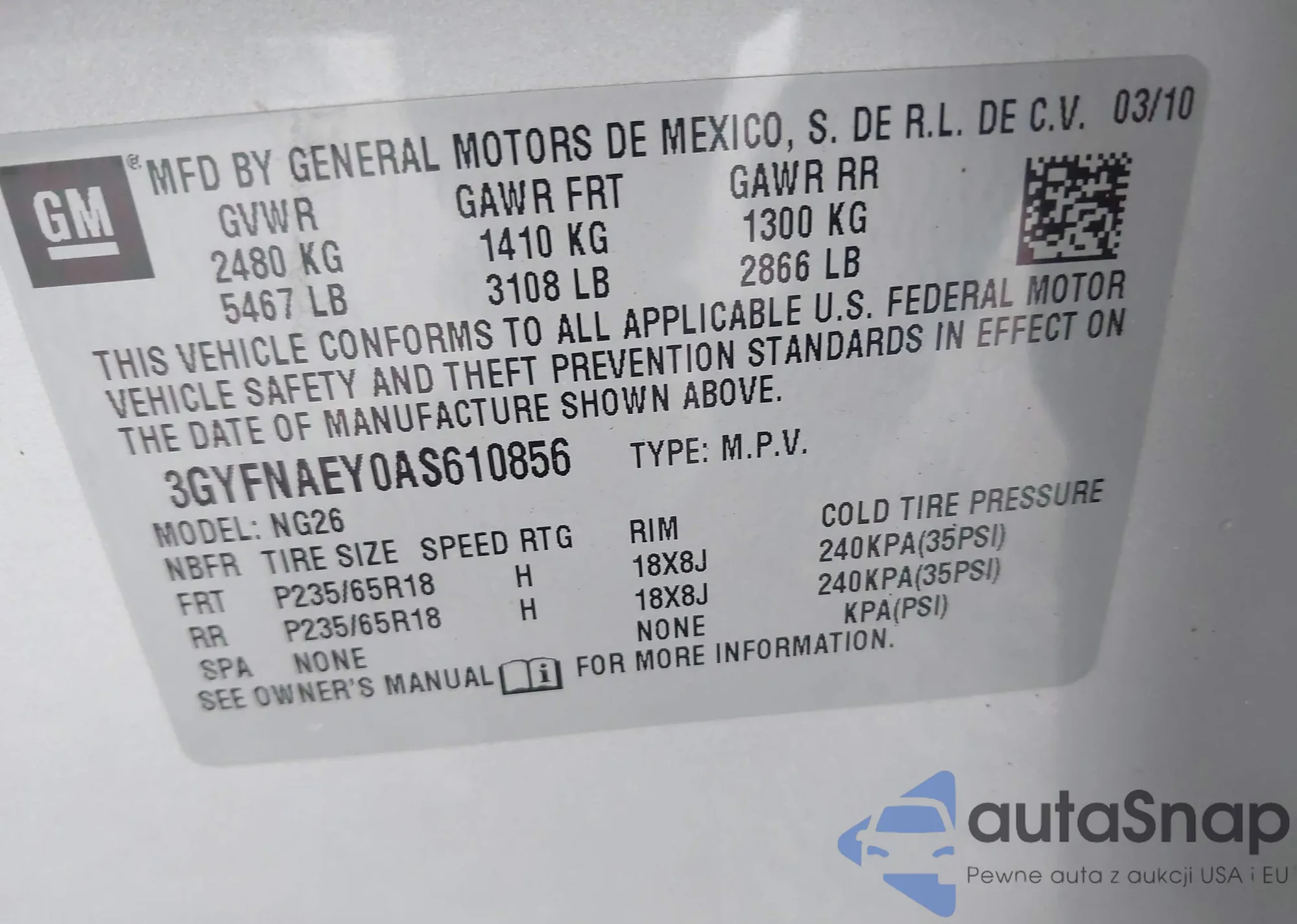 • VIN 3GYFNAEY0AS610856