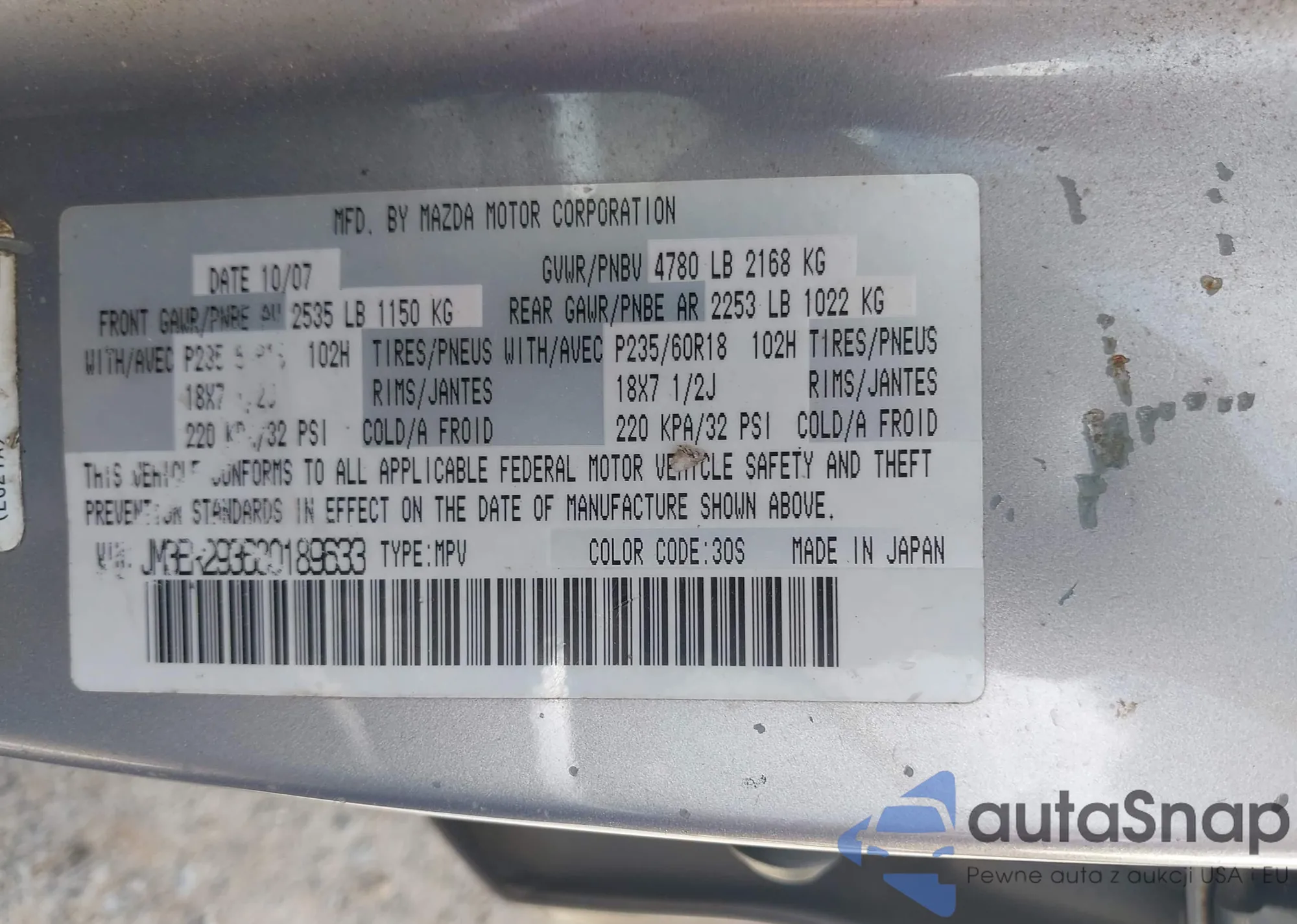 LOT: 42497261 VIN: JM3ER293680189633