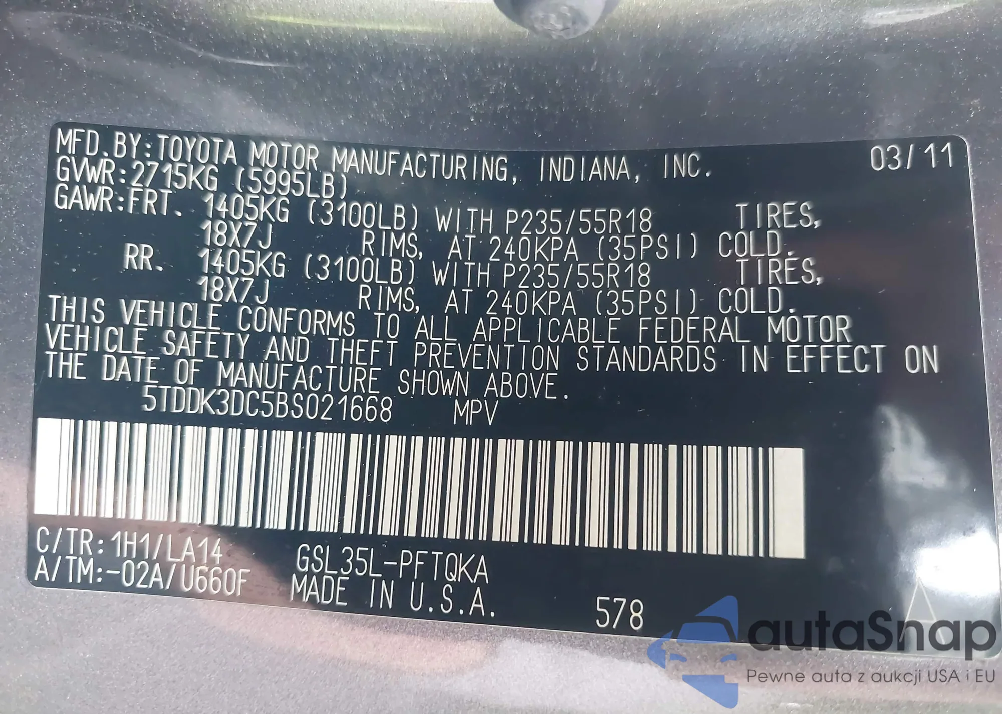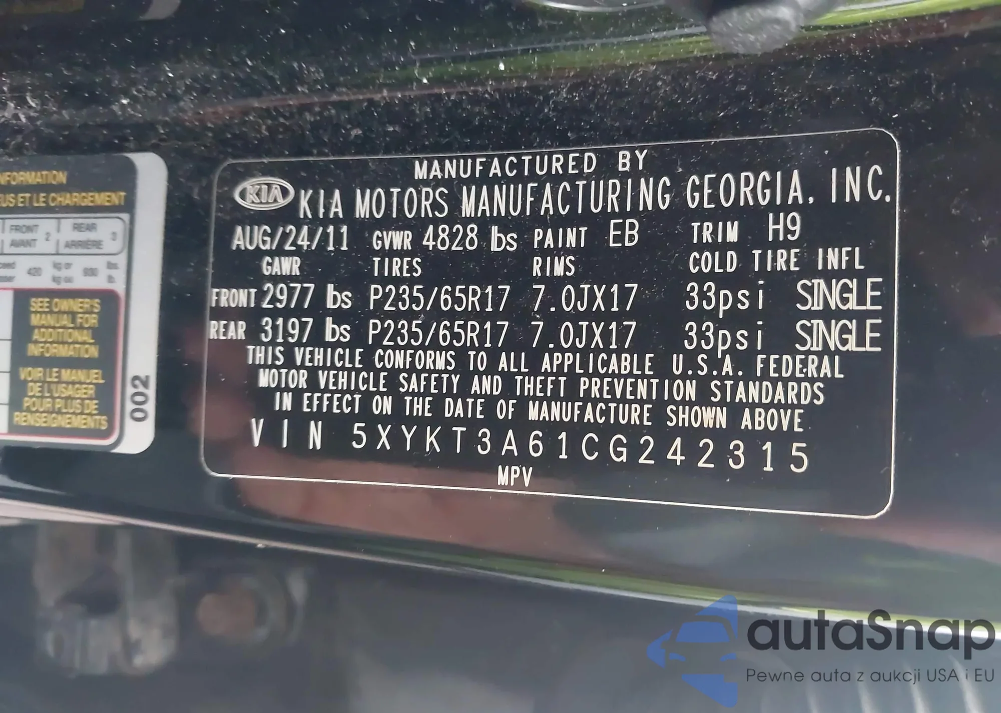 • VIN 5XYKT3A61CG242315