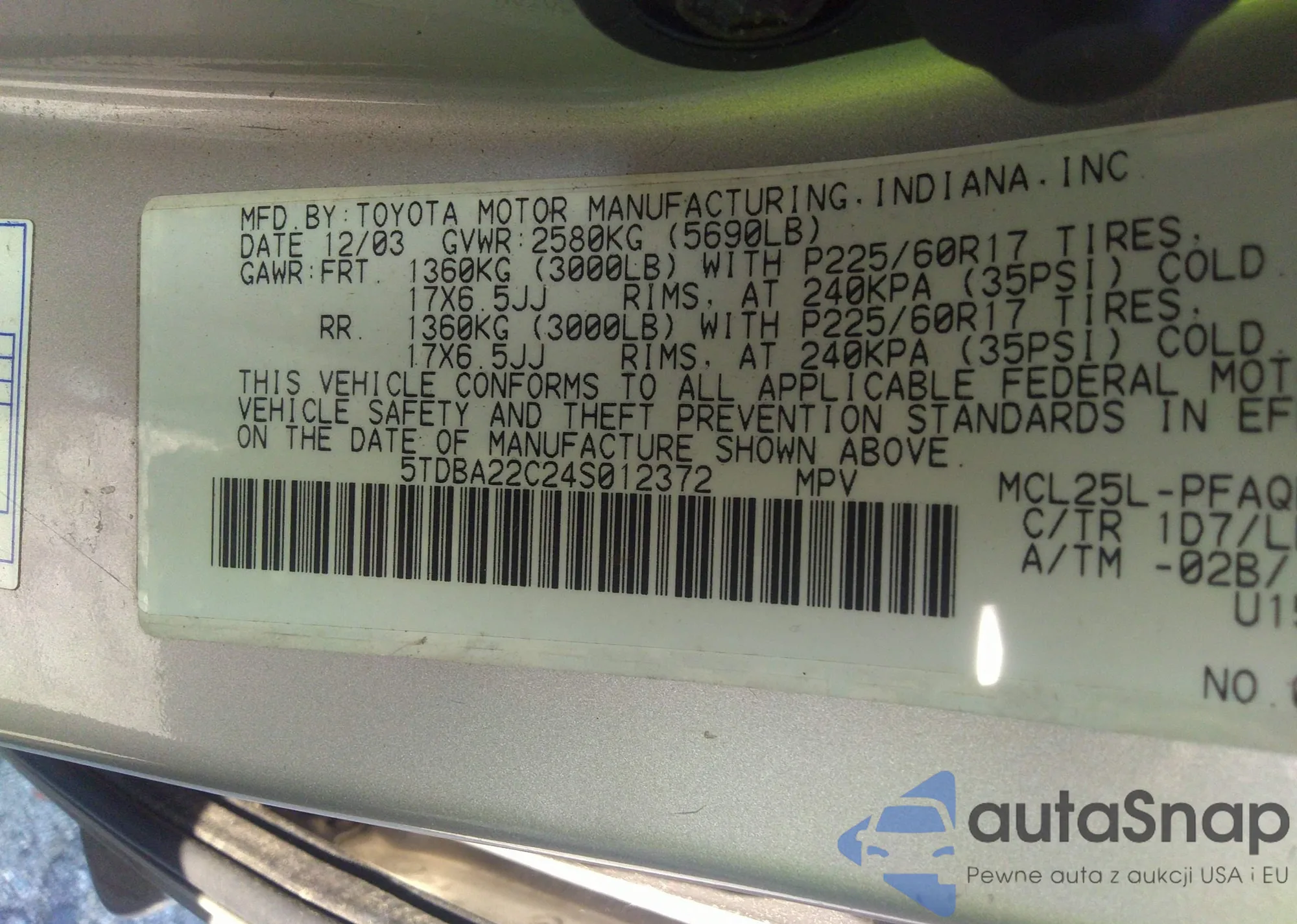 • VIN 4T4BF1FK4GR532653