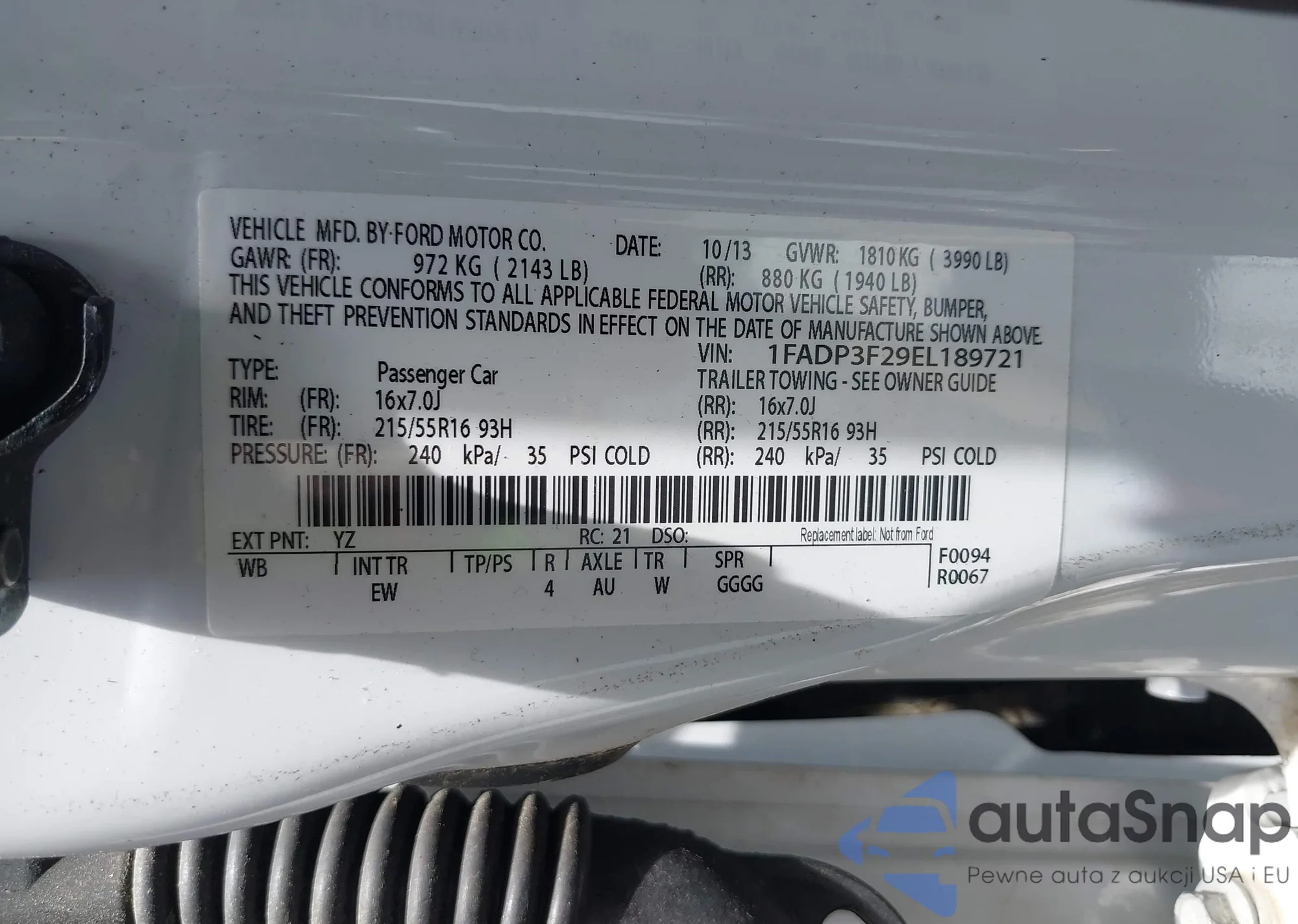 LOT: 41450489 VIN: 1FADP3F29EL189721