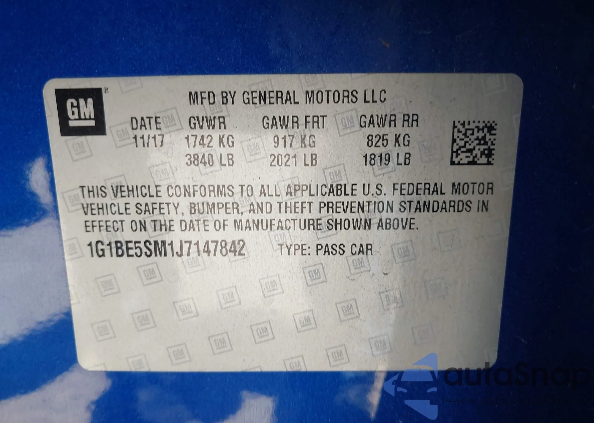 LOT: 41990107 VIN: 1G1BE5SM1J7147842