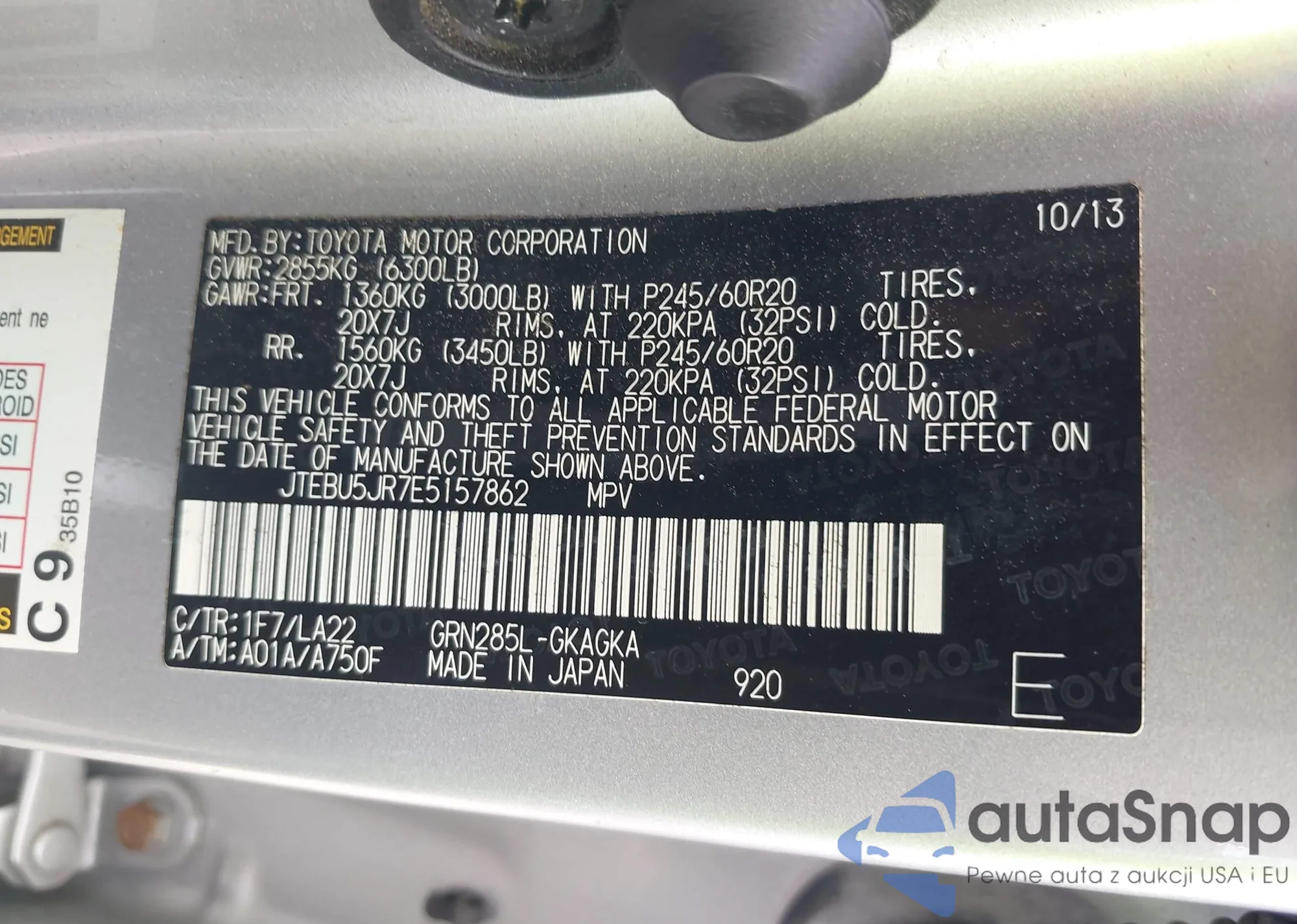 LOT: 42309973 VIN: JTEBU5JR7E5157862