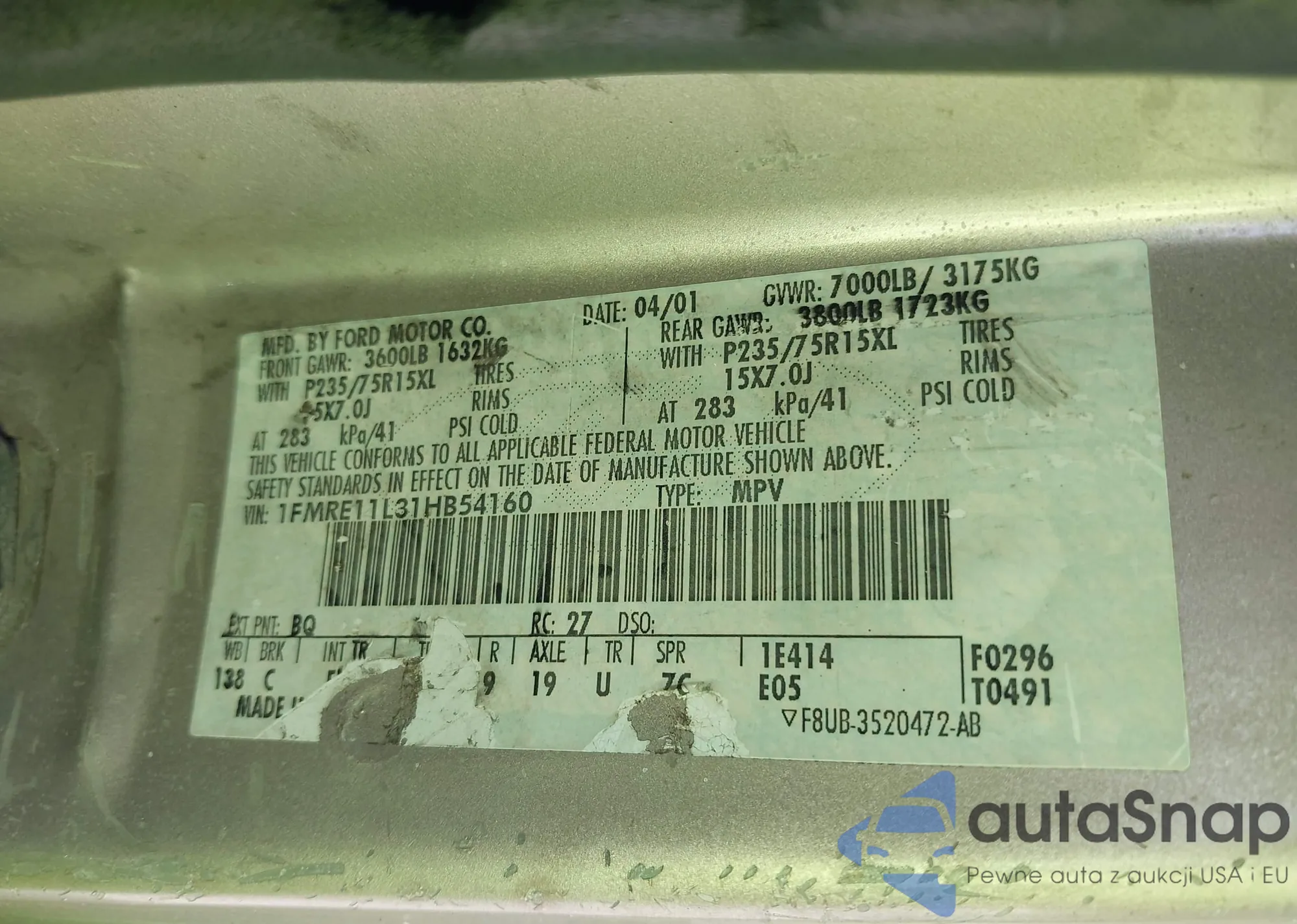 • VIN 1FMRE11L31HB54160