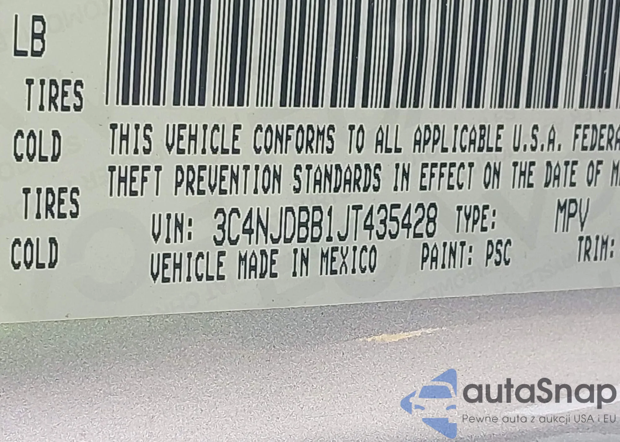 • VIN 3C4NJDBB1JT435428