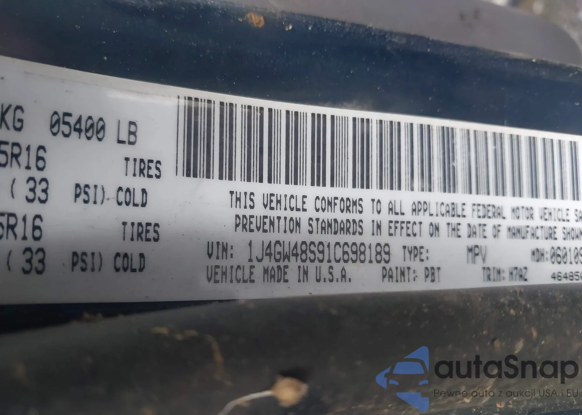 LOT: 42315702 VIN: 1J4GW48S91C698189