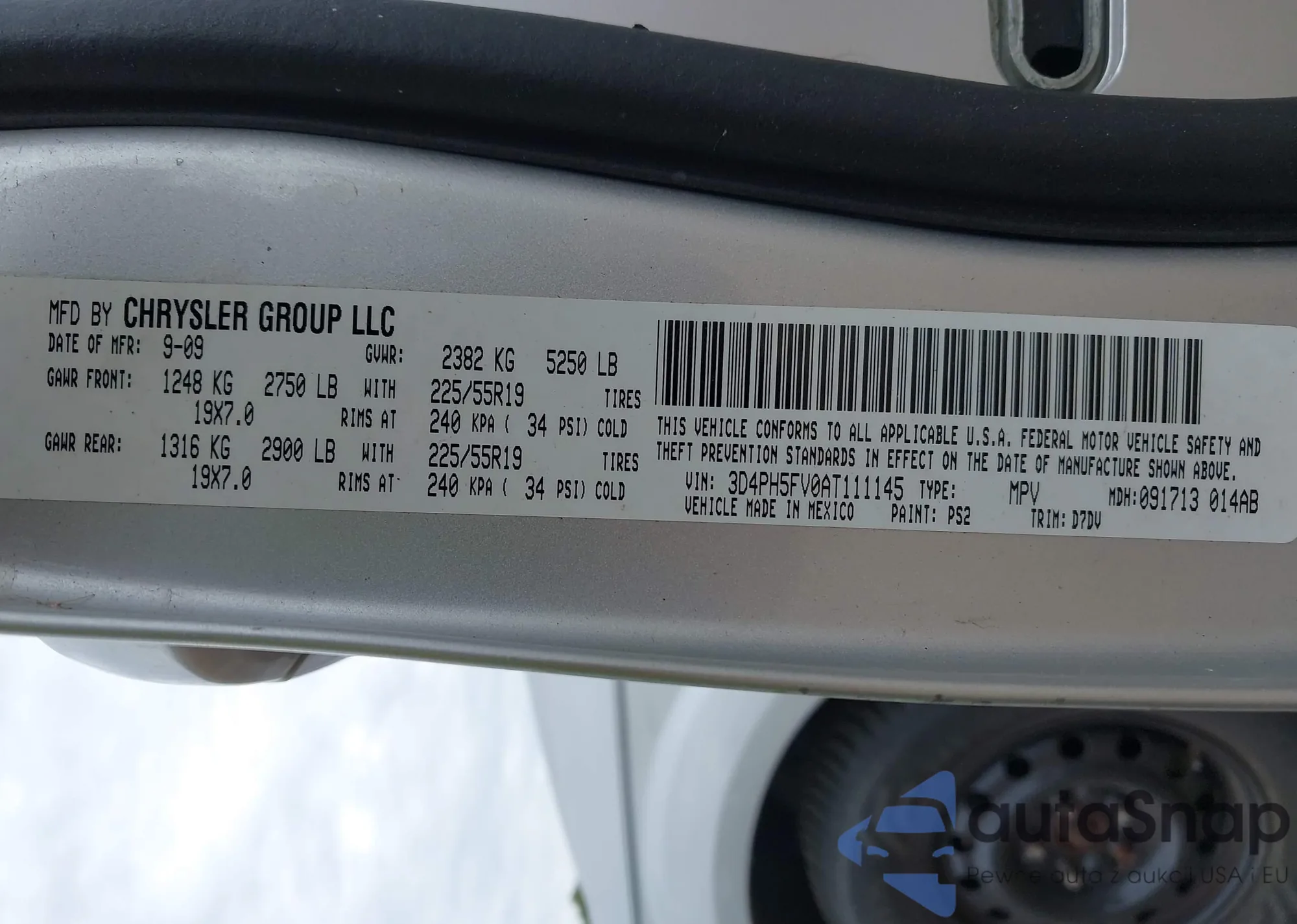 LOT: 42365007 VIN: 3D4PH5FV0AT111145