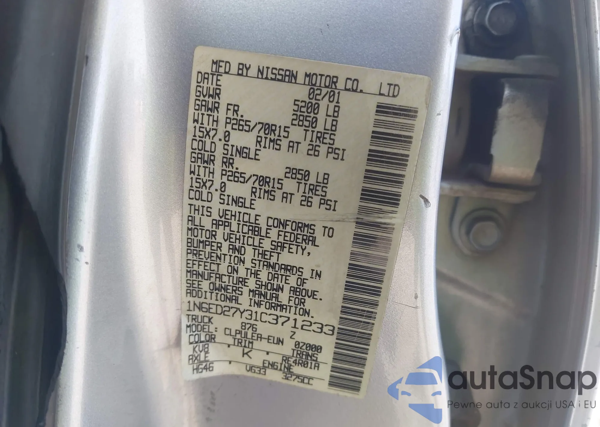 • VIN JN8AS5MV7FW250931