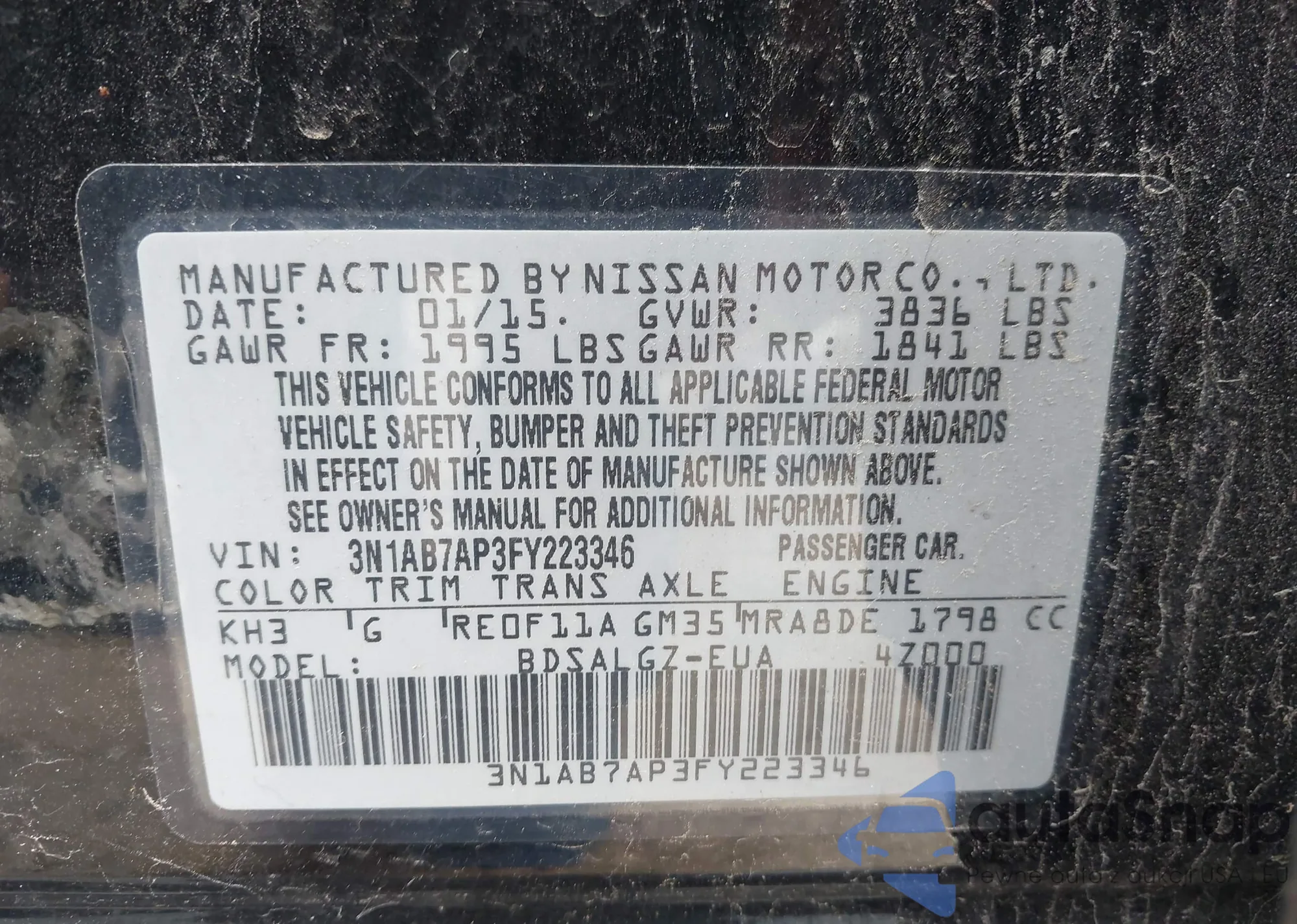 • VIN 3N1AB7AP3FY223346