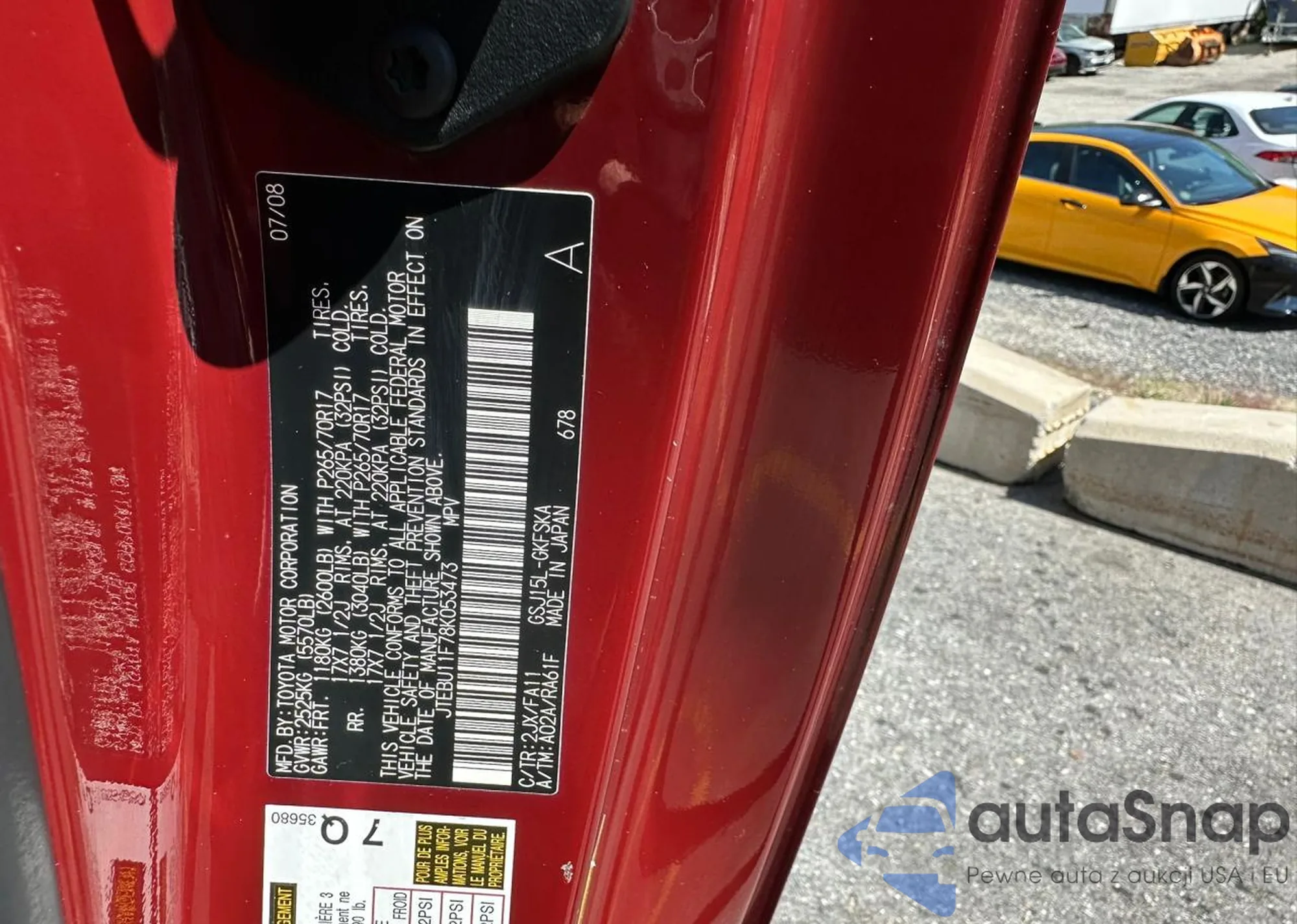 LOT: 58731655 VIN: JTEBU11F78K053473