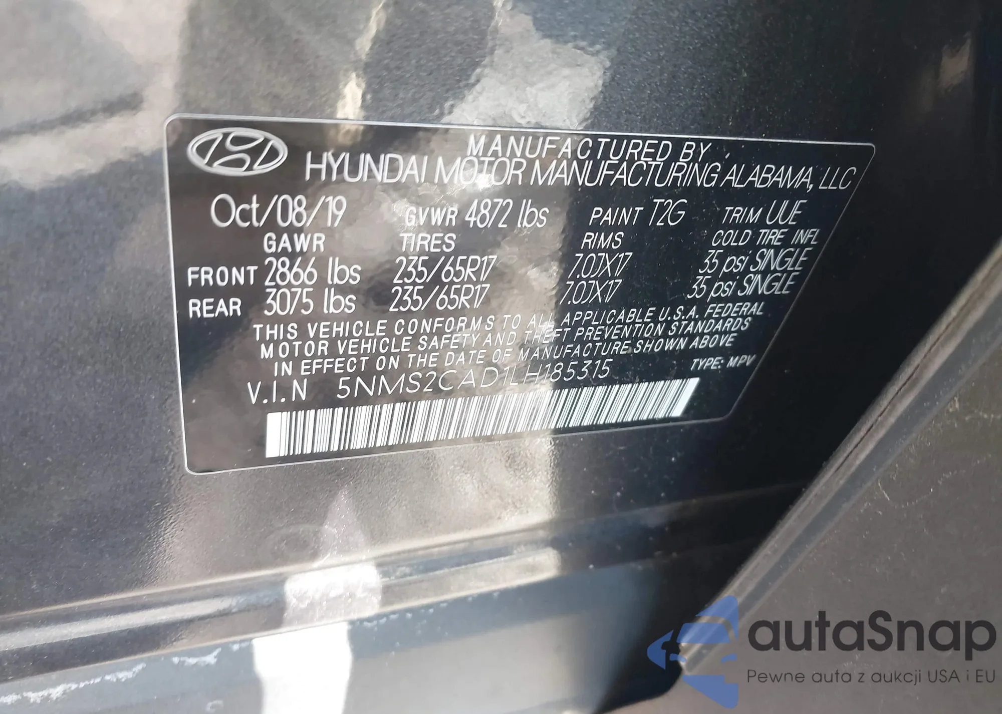 • VIN 5NMS2CAD1LH185315
