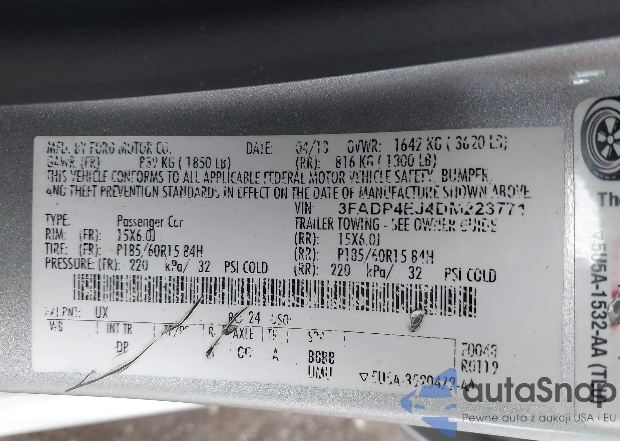 • VIN 3FADP4EJ4DM223771