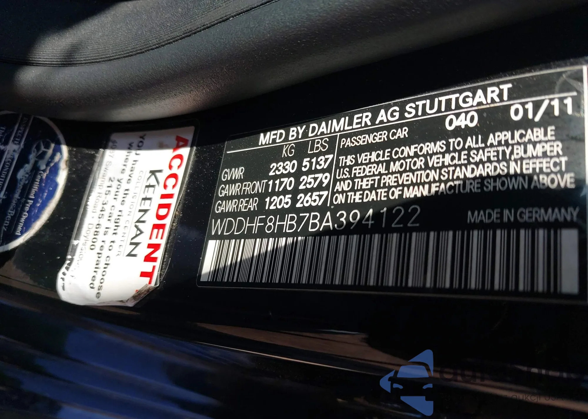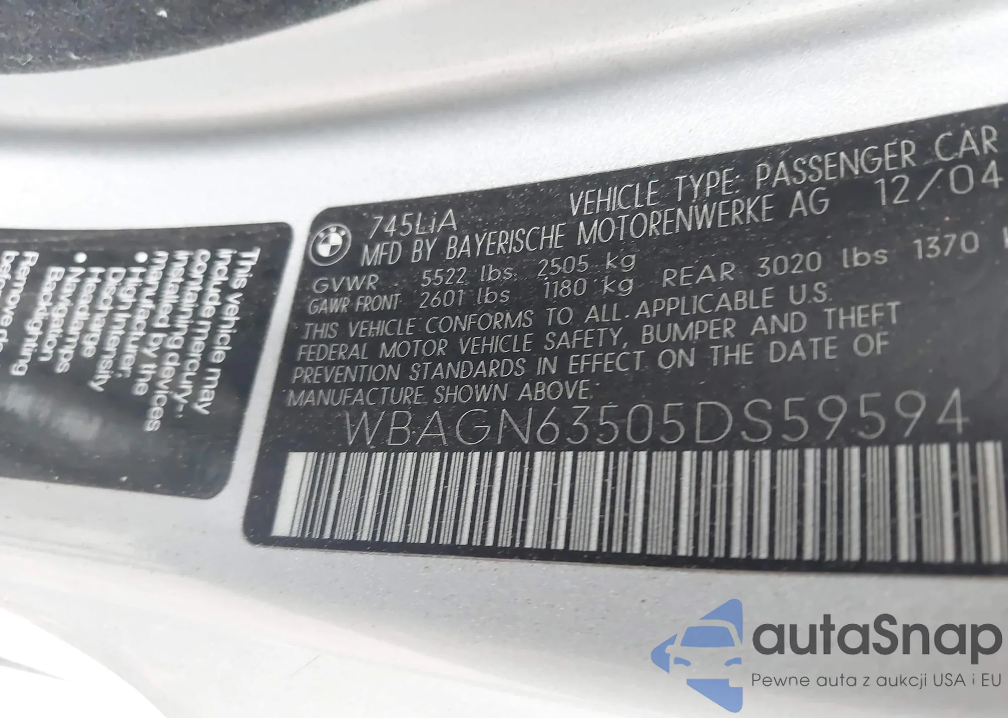 • VIN WBAGN63505DS59594
