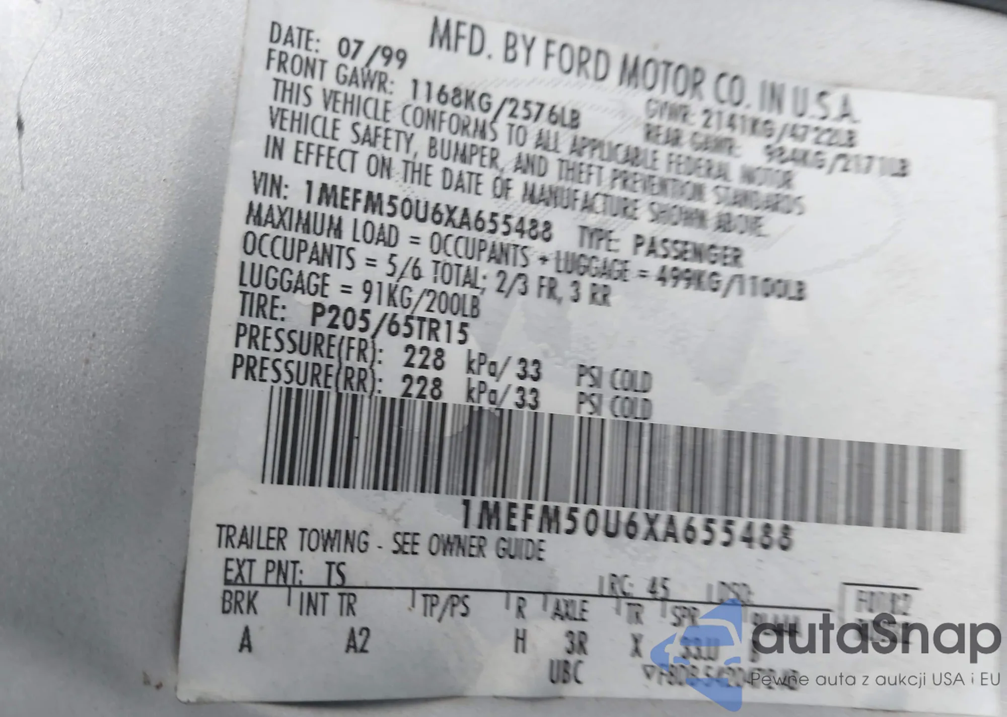 LOT: 42667715 VIN: 1MEFM50U6XA655488