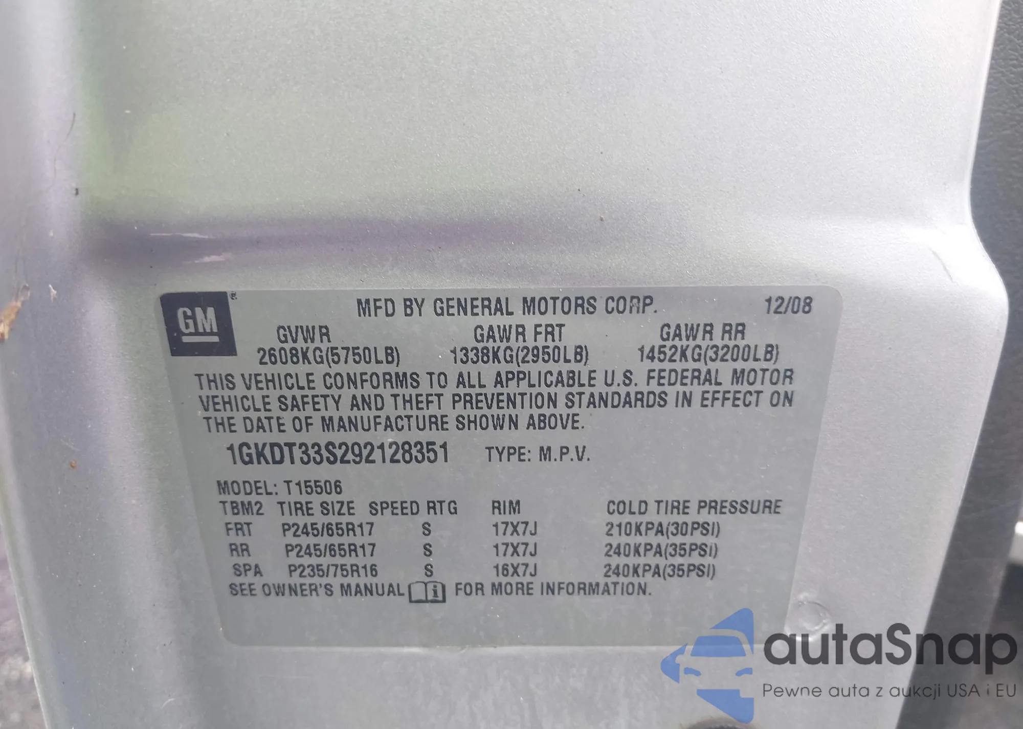 2009 GMC Envoy Sle из США, поврежденный, VIN 1GKDT33S292128351
