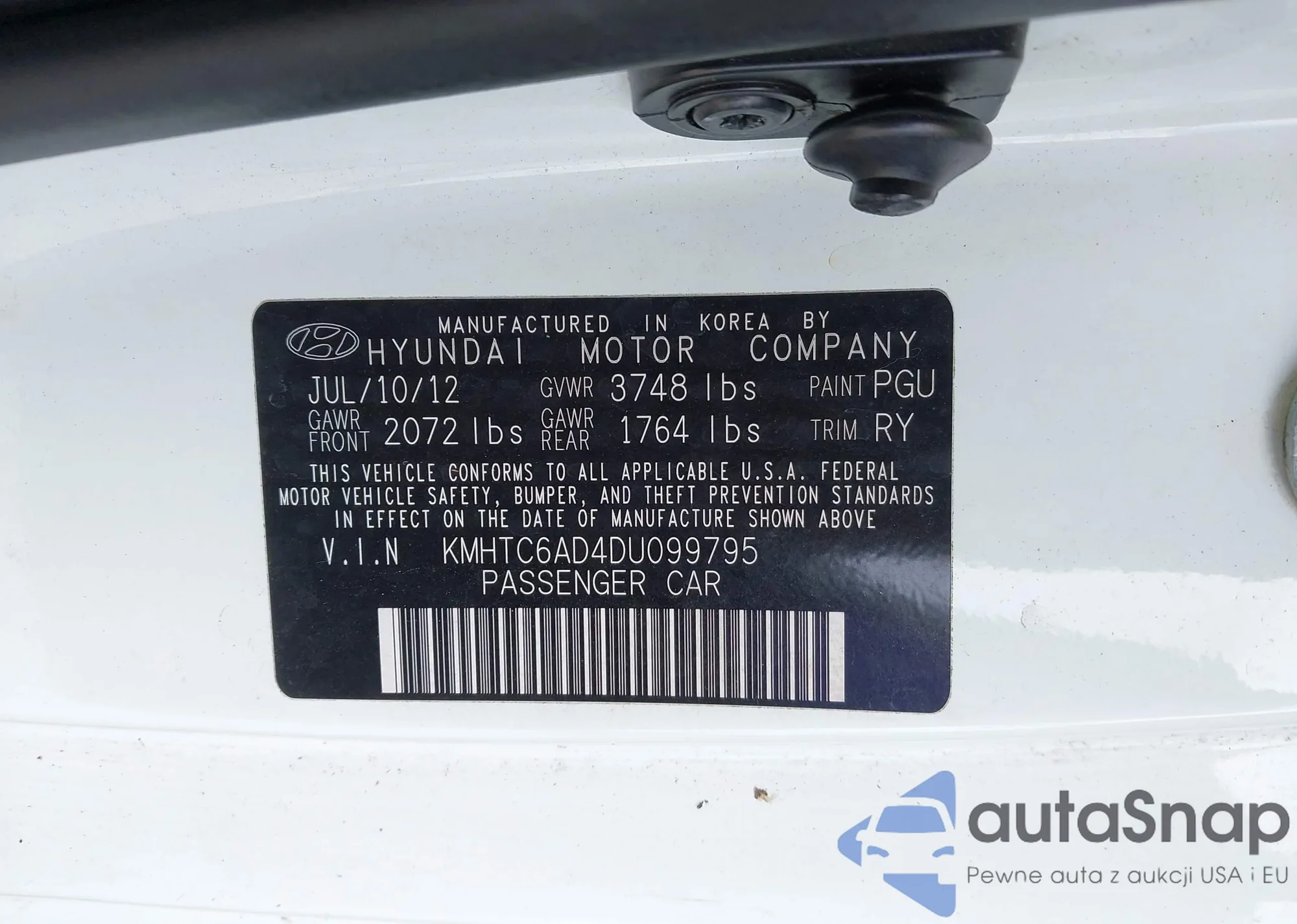 • VIN KMHTC6AD4DU099795